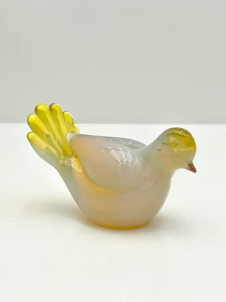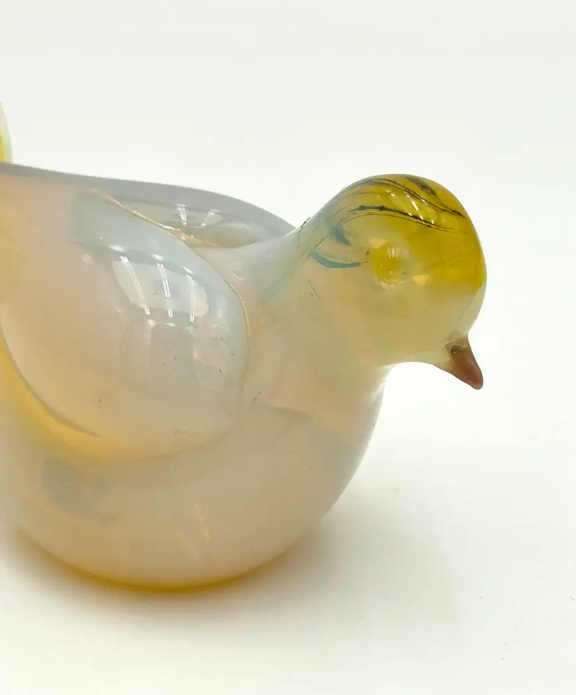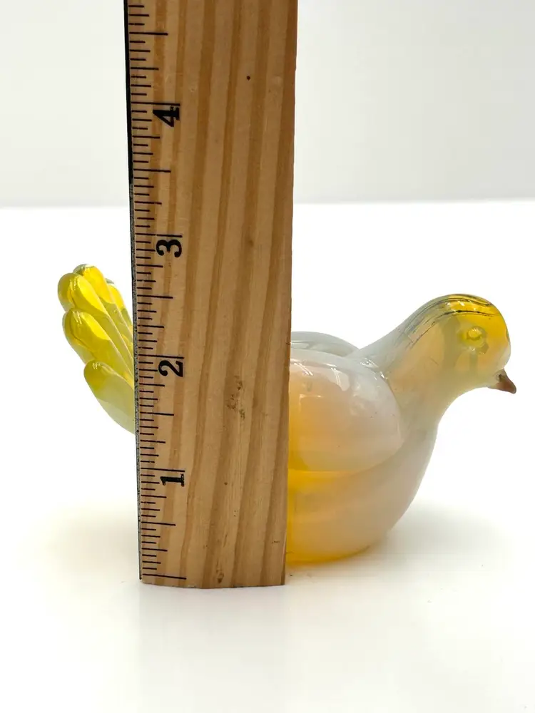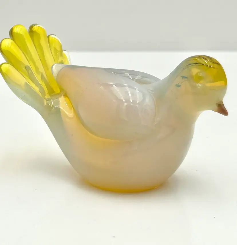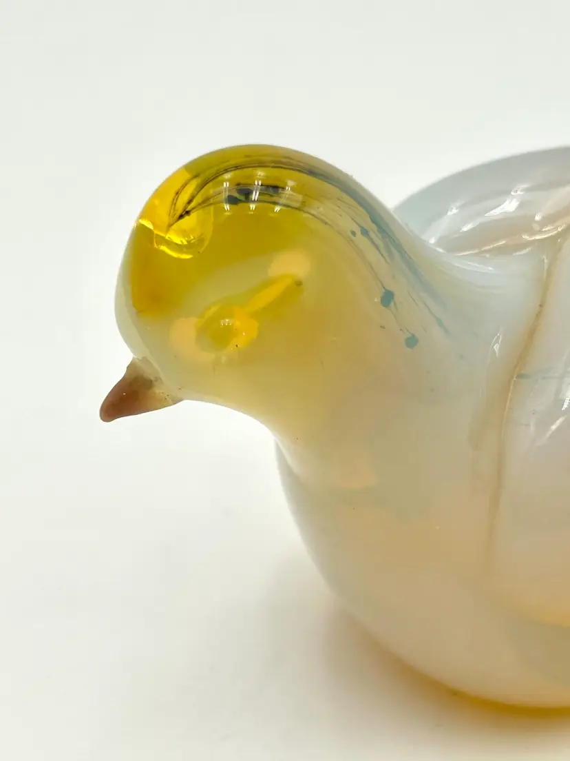 This piece is stunning. It is not signed but it is a quality piece. The bottom is polished flat and clear. The condition is very good with no chips or cracks. About 2.75 inches tall at the tail and 3.75 inches long There are no chips or cracks