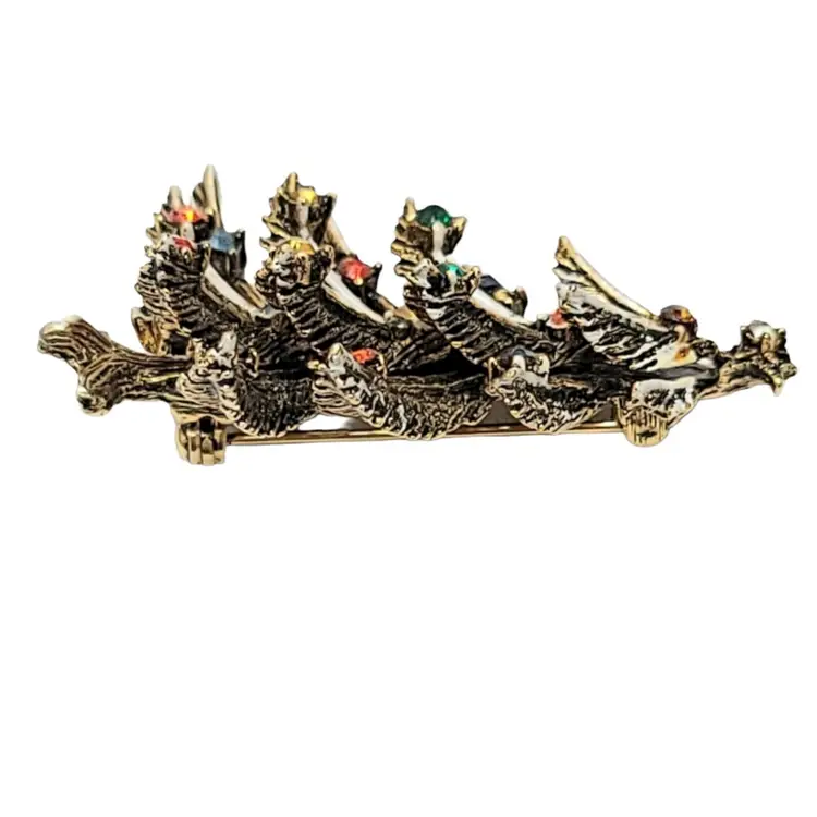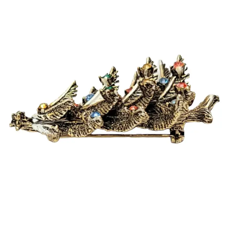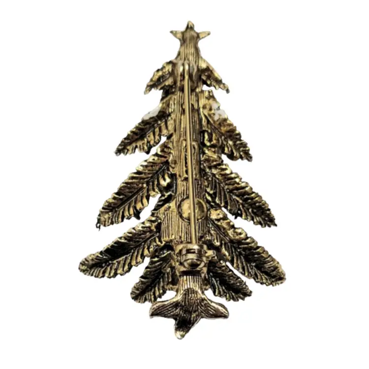 ART Gold Tone Rhinestone Christmas Tree Pin Brooch, Signed