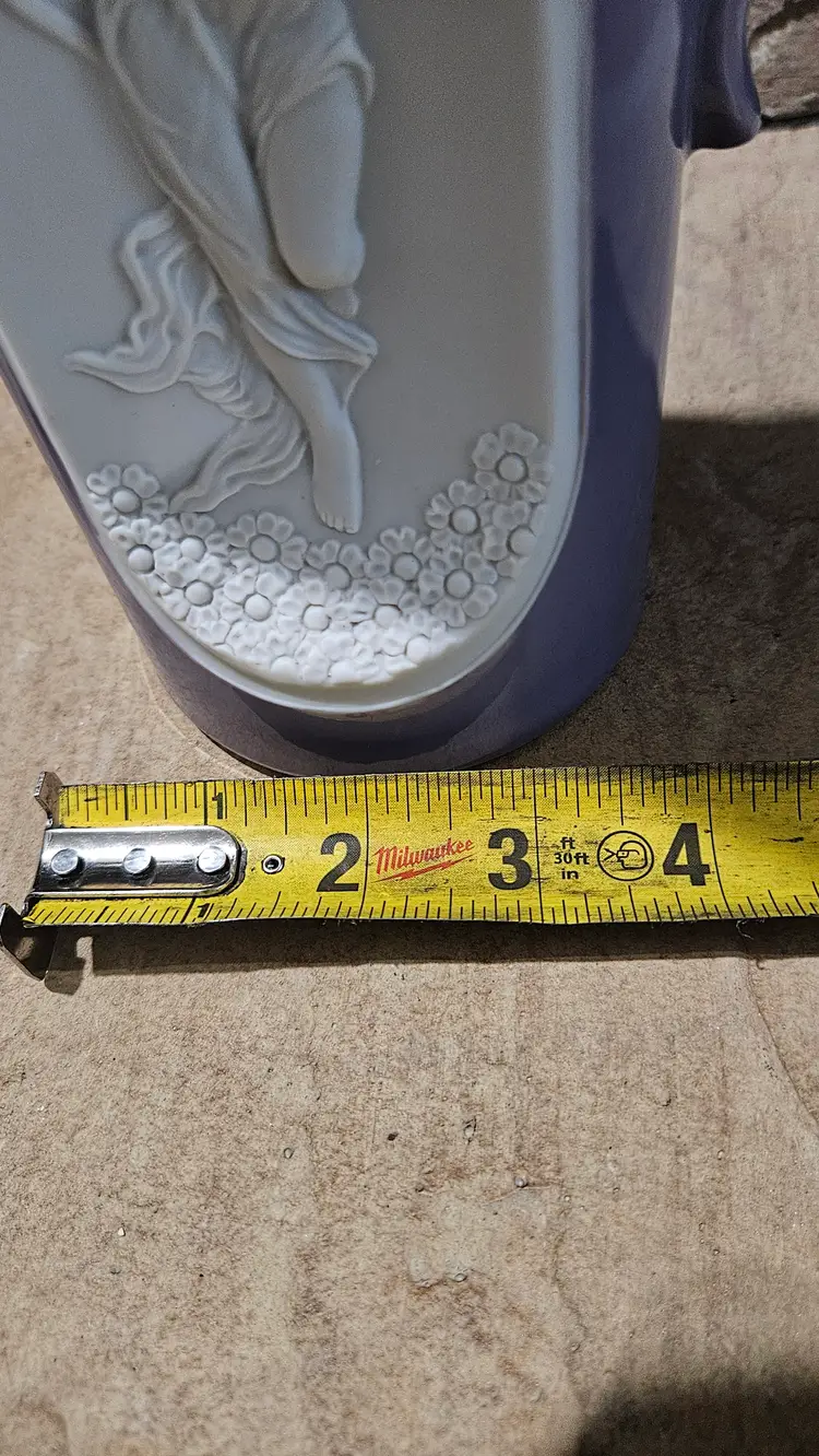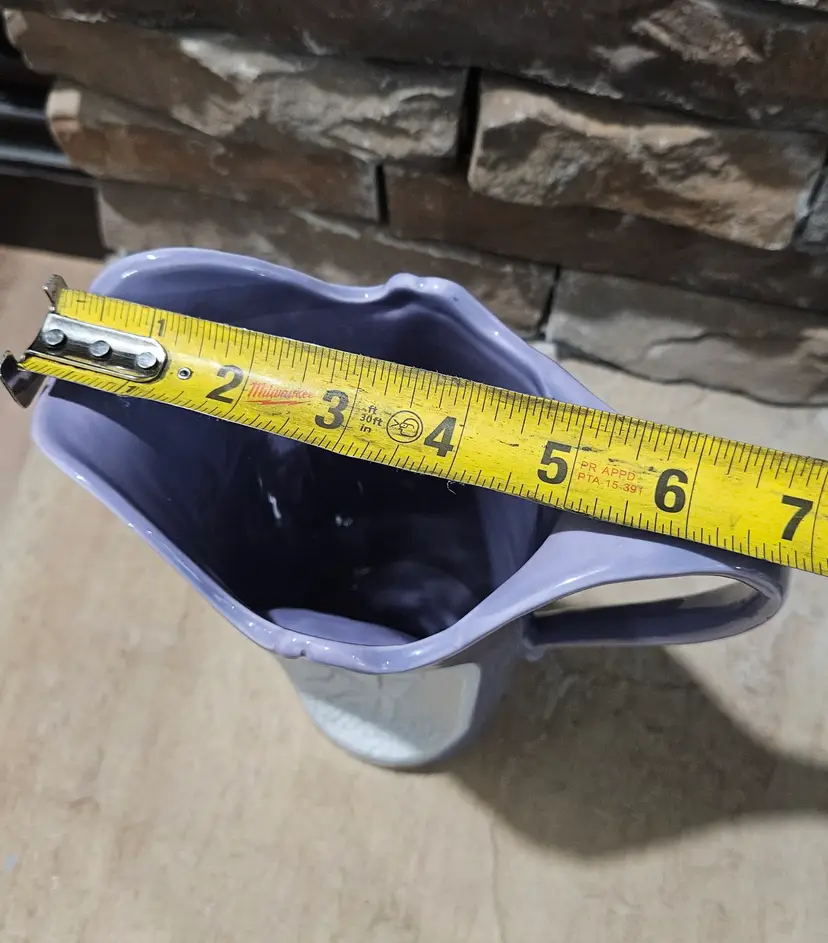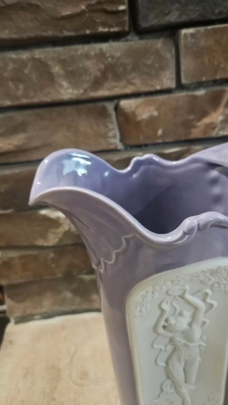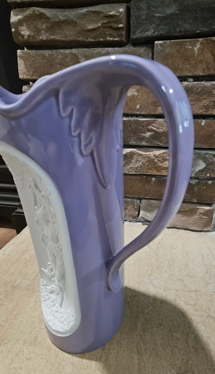 Art Nouveau Pitcher made by Setco Craft(makers sticker on the bottom). According to my online research, it was made in Japan. It stands approximately 10" tall, the opening is approximately 5" wide and the base is approximately 3 3/4" wide. There is a small dark dot seen on the outer edge of the cameo and appears to be a makers flaw. This Pitcher is in Good, Pre-owned condition, showing minimal to no wear from age or previous use. There are no breaks, no cracks, no chips. See all photos of details