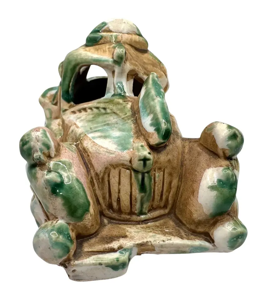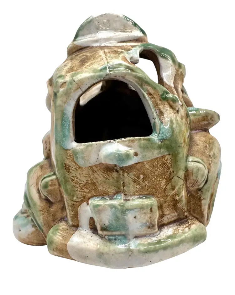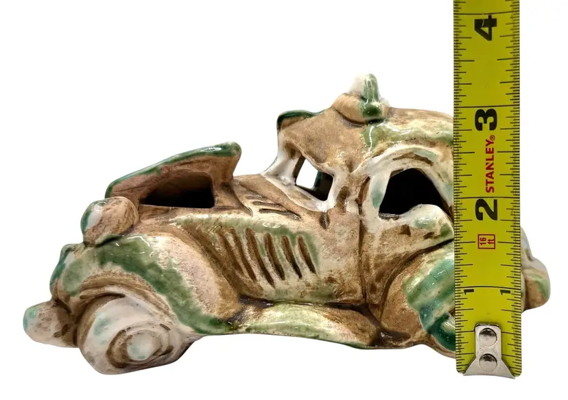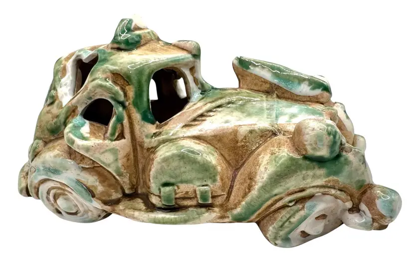 Interesting pottery figurine shaped like an abandoned, broken down vehicle.