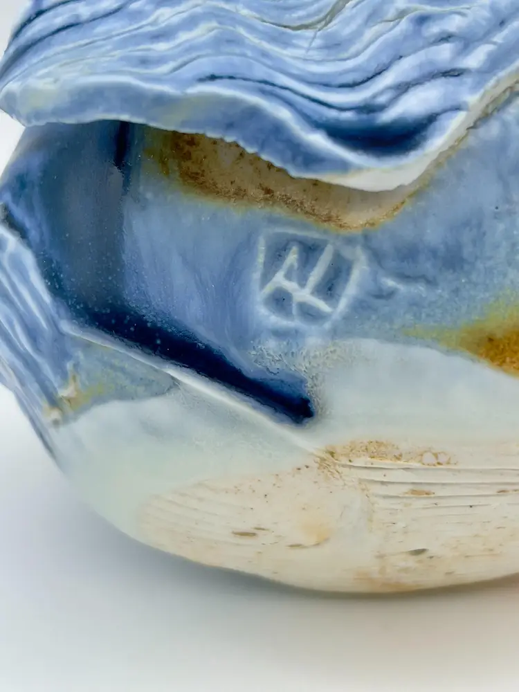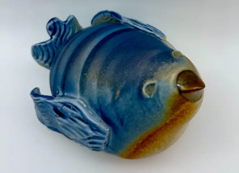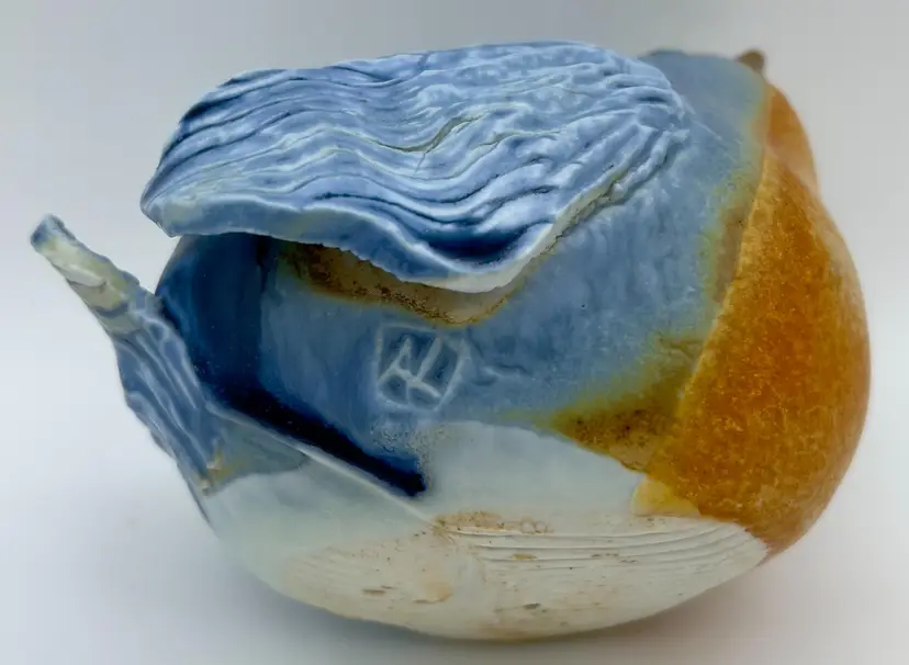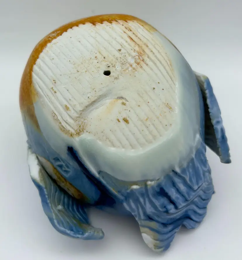 Handmade with applied wings and gold detail on beak. Stamped: AL as pictured. Super cute decor piece! Excellent pre-owned condition, no chips, cracks or breakage. Dimensions: 5" from tail to breast, x 4"T x 3" Base diameter