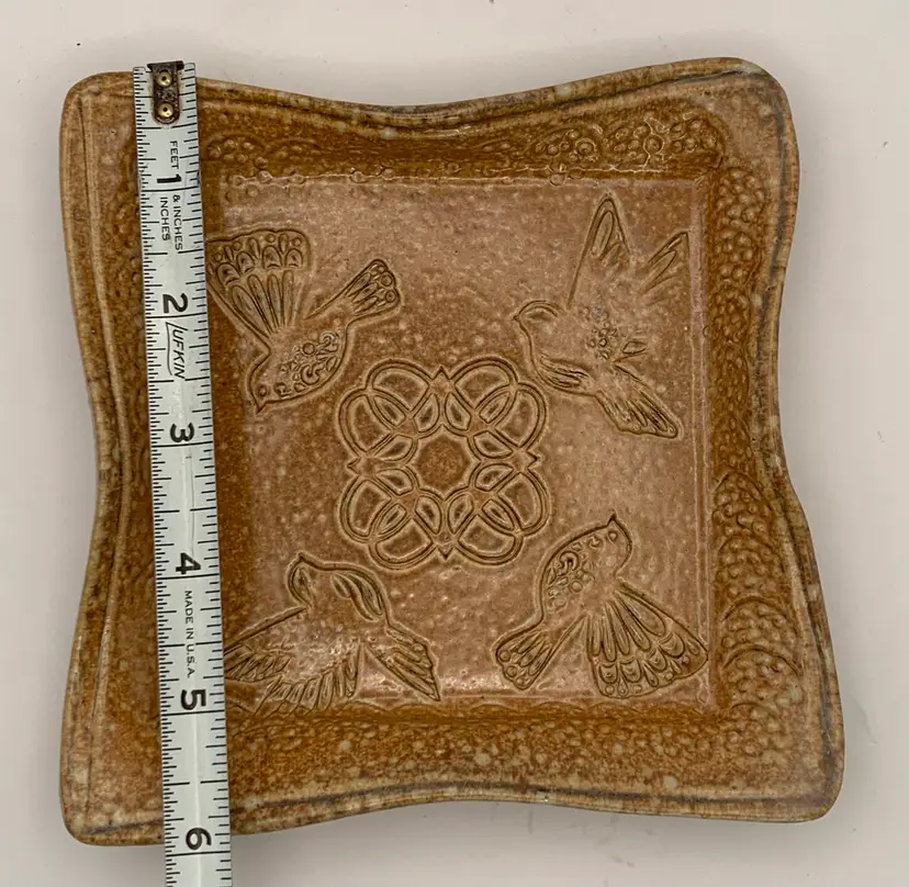 Embossed with birds. Pretty 6 x 6“ tray. In good condition with no chips, cracks or repairs. There are several artists with name wandless in North Carolina. So it may be from NC.