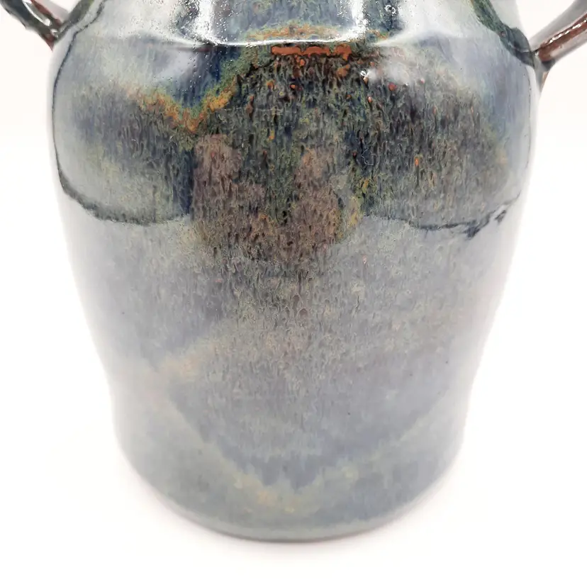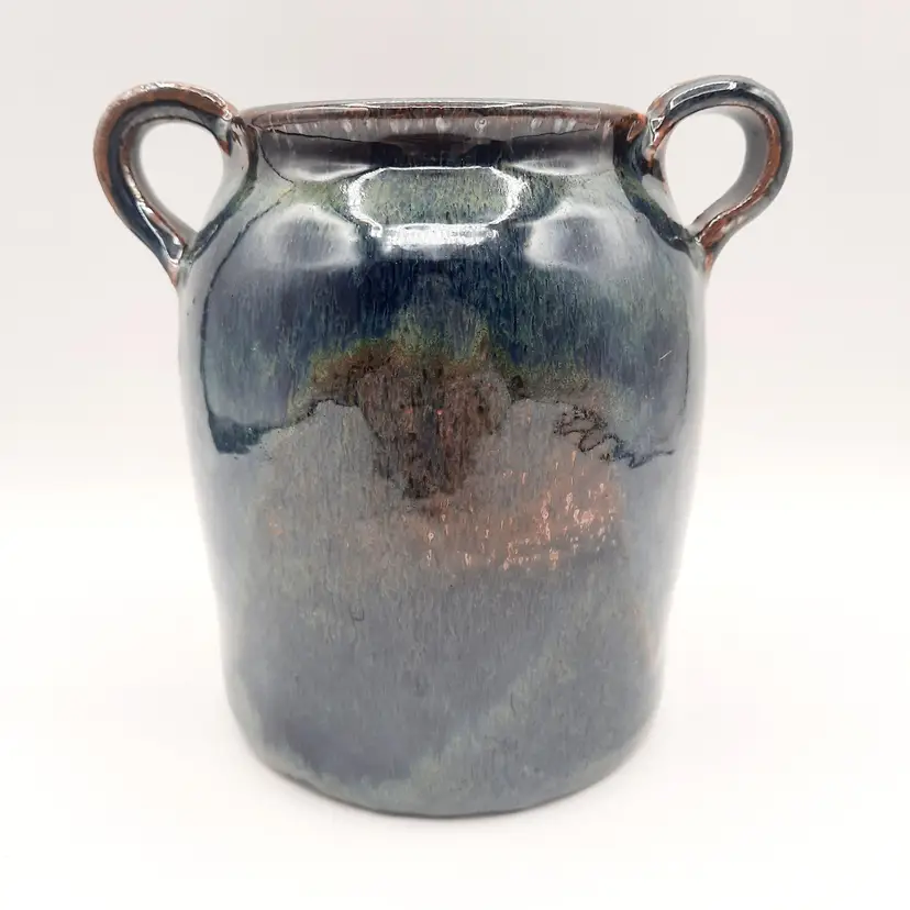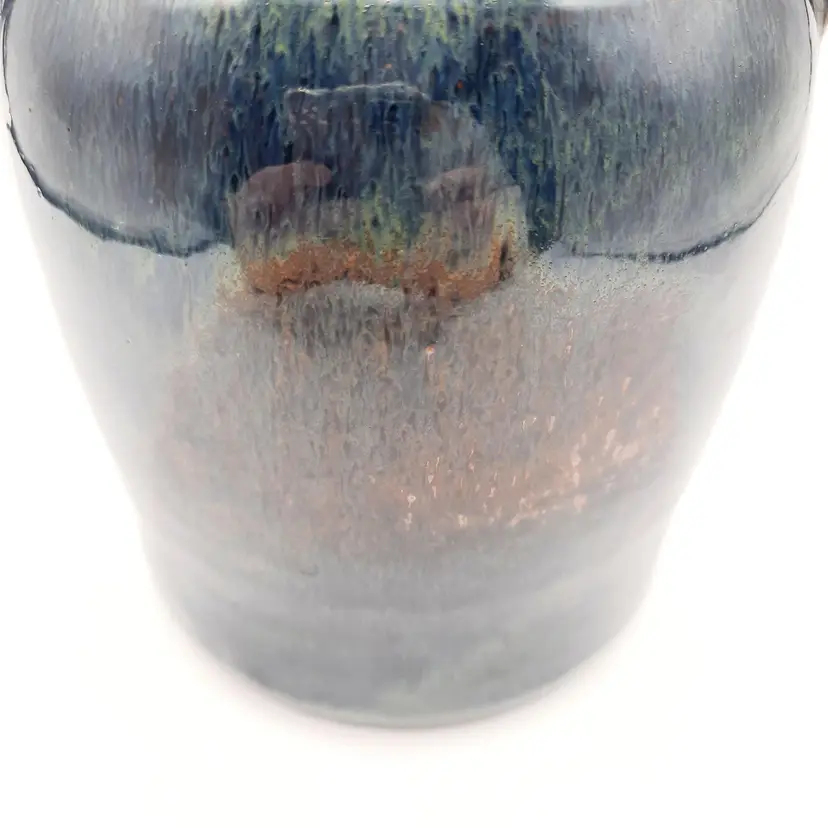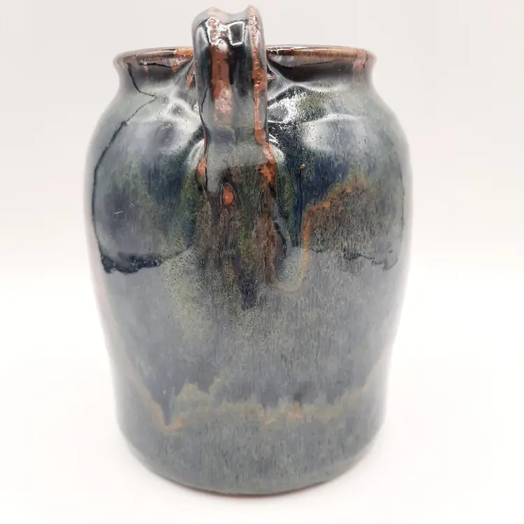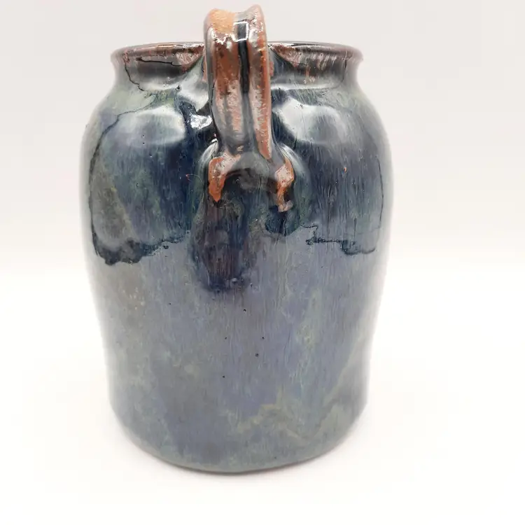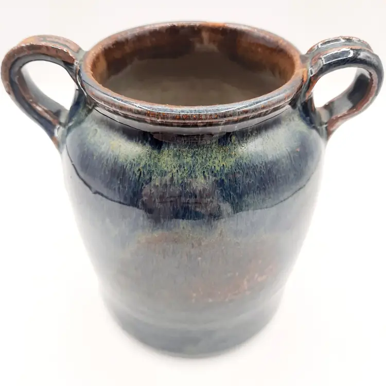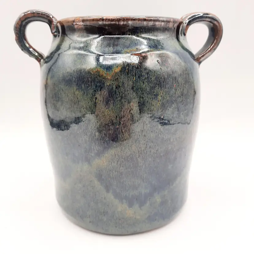 Colors in this crock are so beautiful, 6"H x 6"W handle to handle, in great condition.