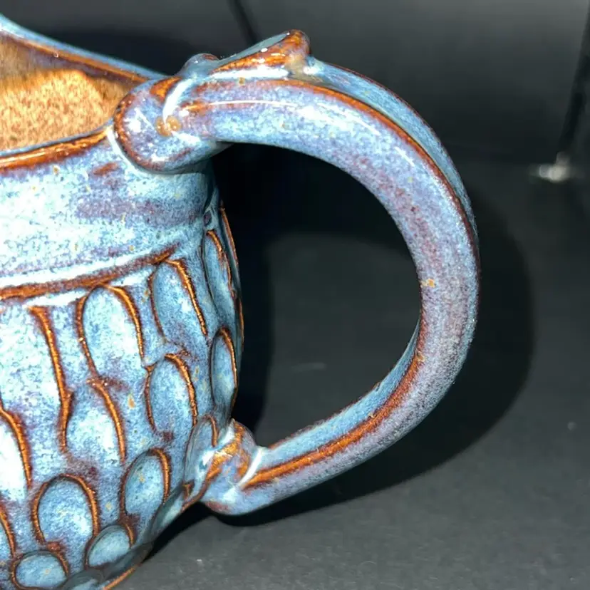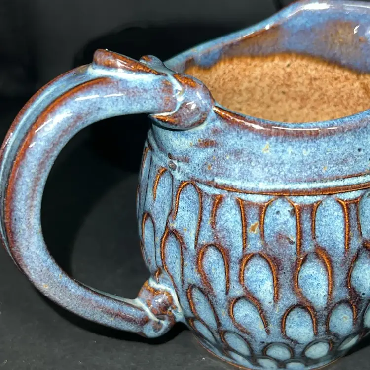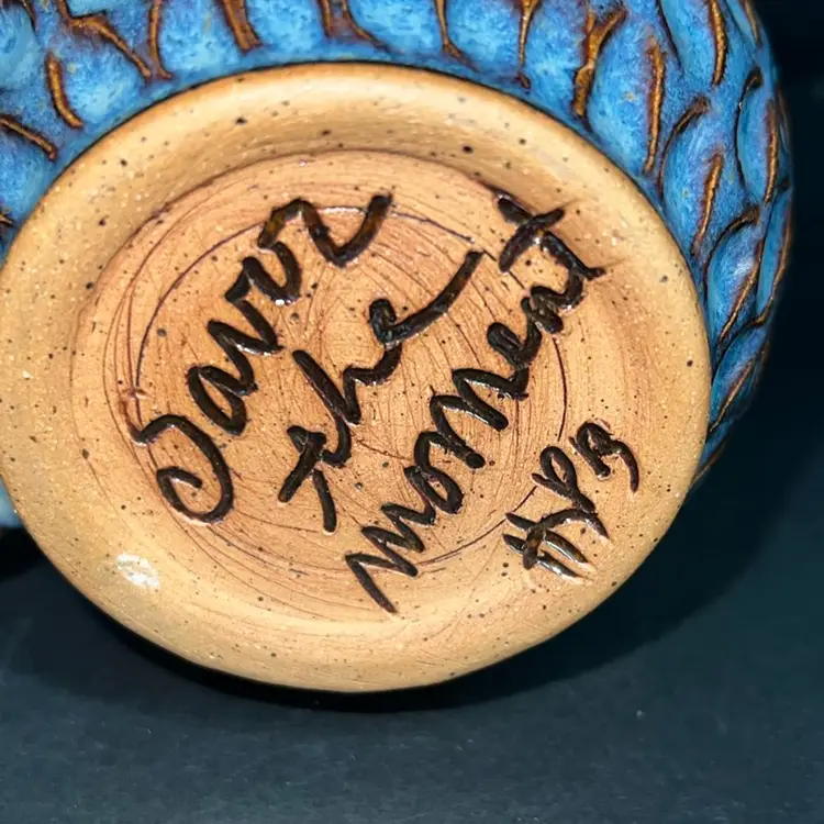 3.75" high x 3.5" wide Weight 11 ozs Created by Dirty Dog Pottery This is a handcrafted piece of art pottery. Finished items will have variations in color and texture. Color may vary slightly from image due to variations in monitors. Glazes may vary slightly from photo since each piece is handcrafted and unique.