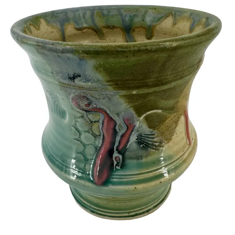 In excellent condition; no chips, scratches or cracks. Measures approximately 3.25”dia (top) x 2.5”dia (bottom) x 4”tall.