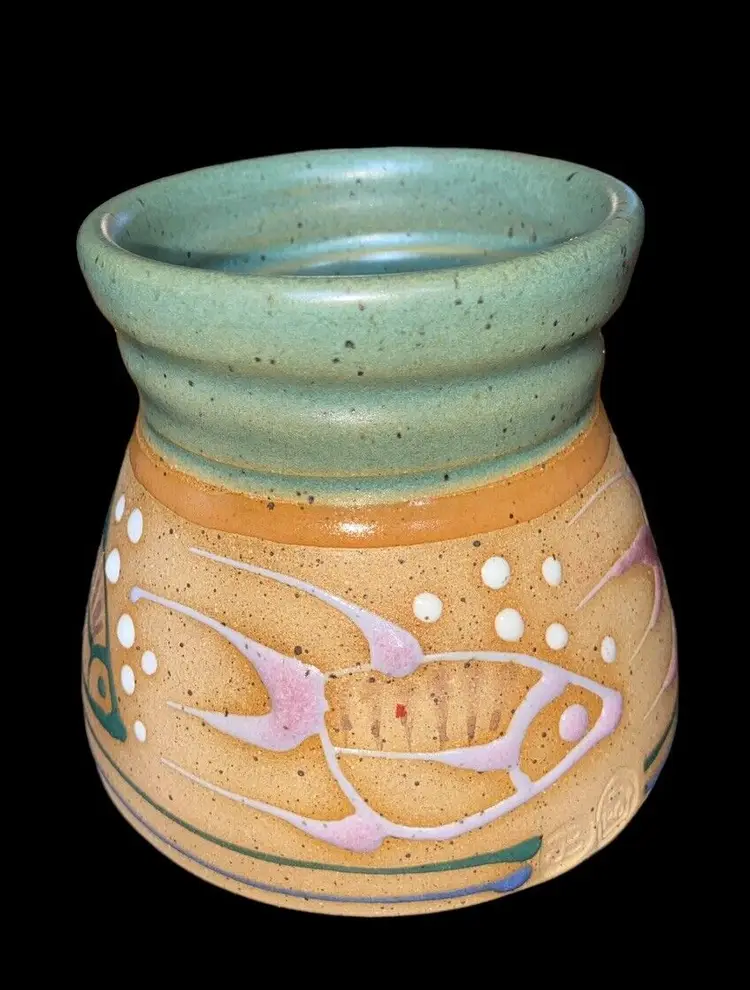 Brand: JB Pattern: Fish Type: Planter Original/Licensed Reproduction: Original Color: Multicolor Indoor/Outdoor: Indoor Item Height: 4” Backstamp: Impressed Finish: Matte Subject: Tropical Fish Item Width: 4”