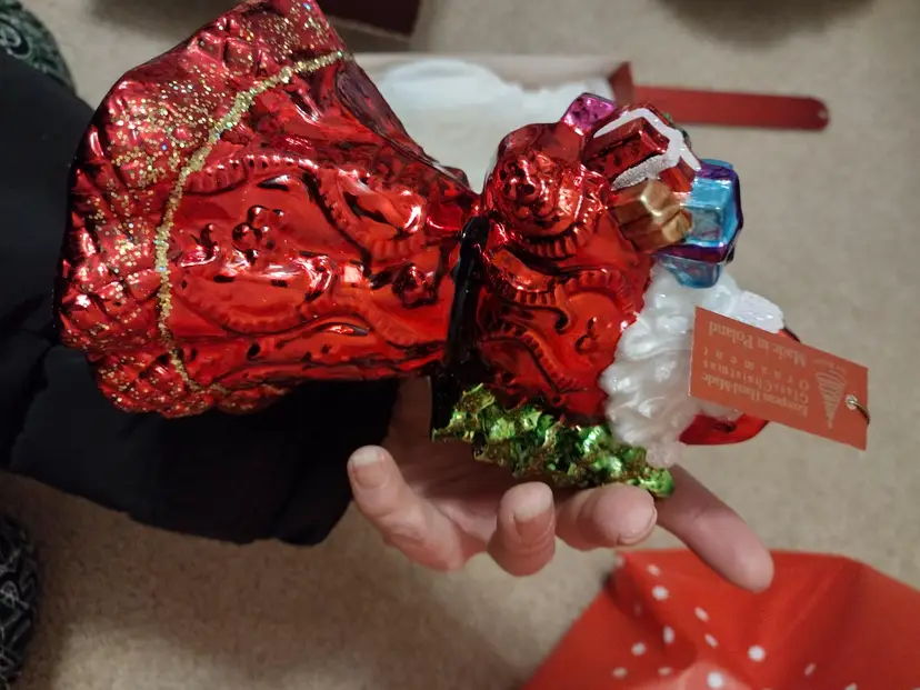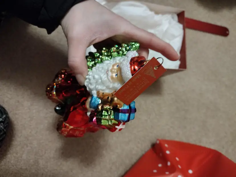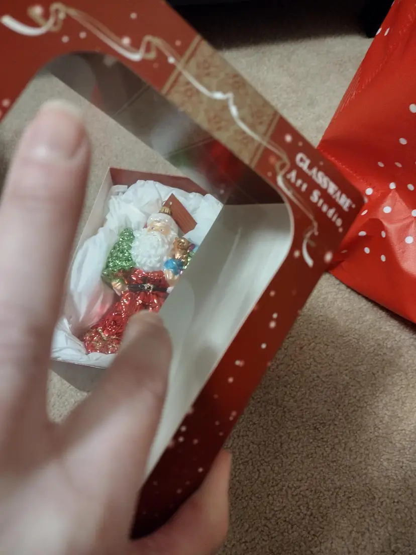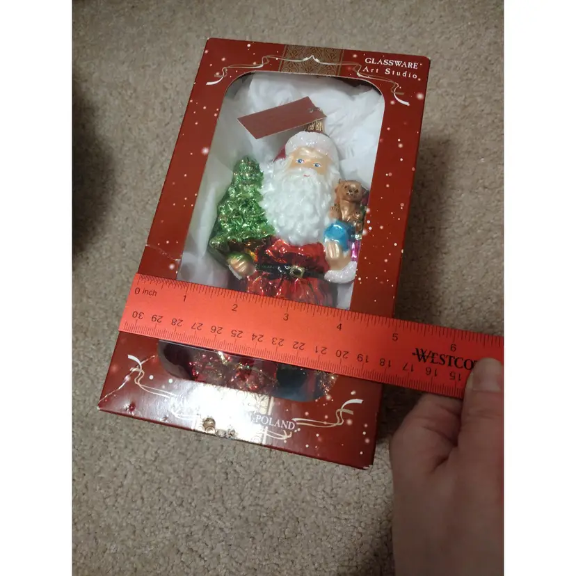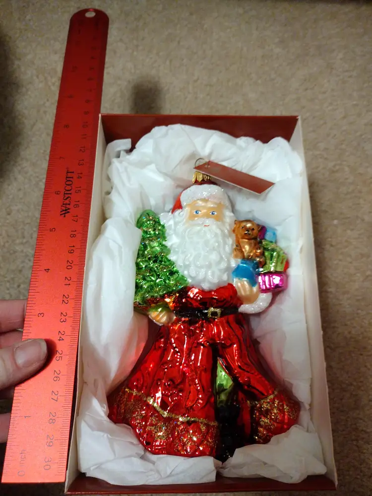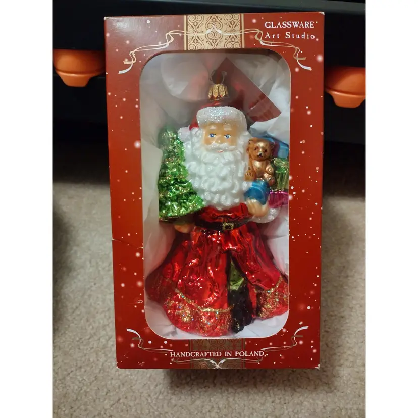 Art Studio Blown Glass Ornament Santa With Christmas Tree And Teddy Bear