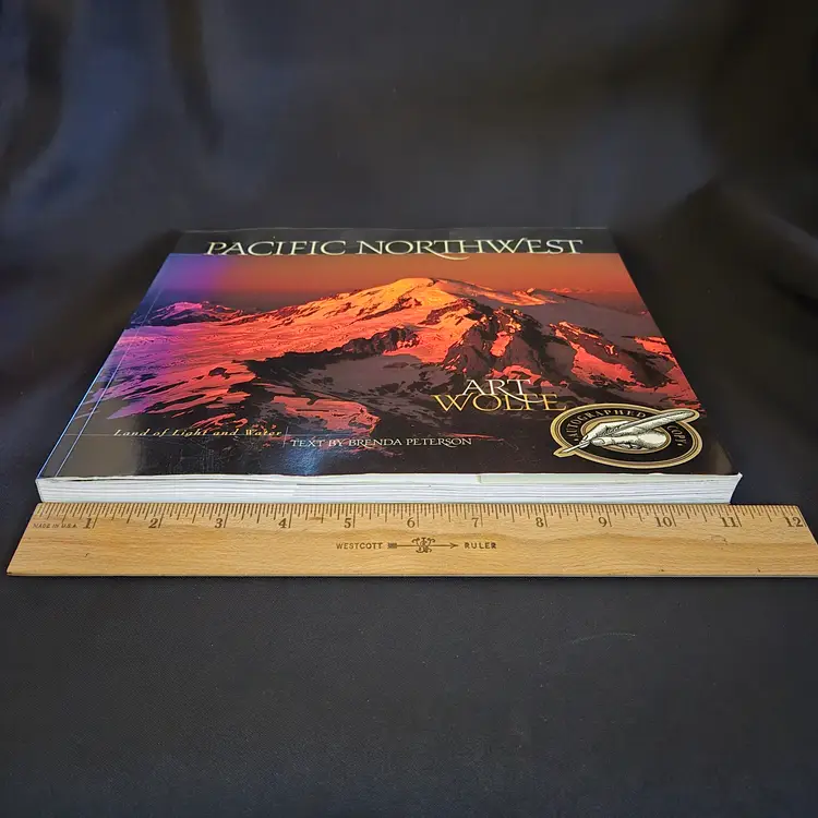 Art Wolfe SIGNED "Pacific Northwest: Land of Light and Water" Paperback - with condition Issues. Used condition with edgewear, kinks, back cover has ripple in coating, scratches, nicks, etc. from use. Please view all the photos and please ask any questions prior to purchase when possible.