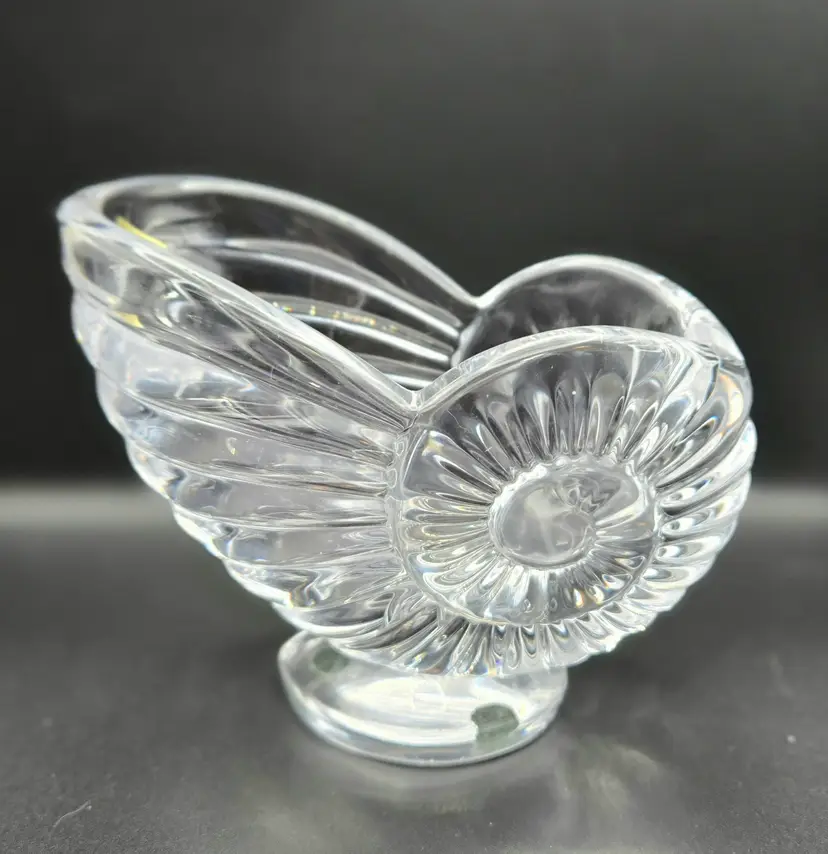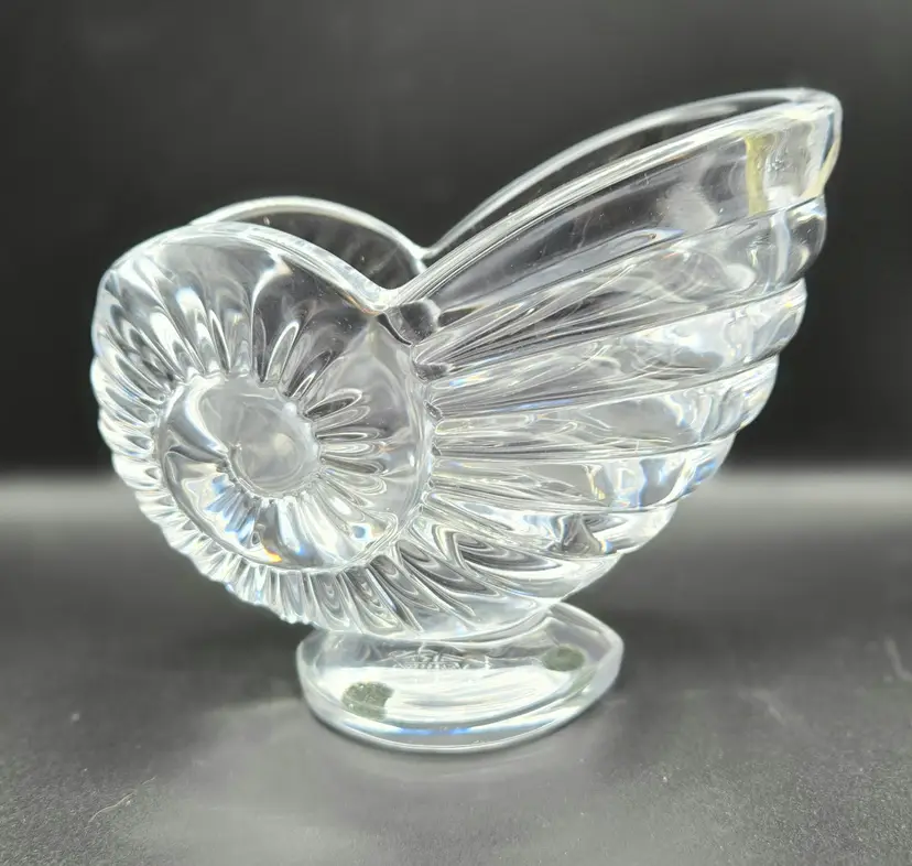 Arte Vannes France Crystal Nautilus Shell Dish. 5.5" x 4.5" x 3" with original label. No chips or cracks. Excellent vintage condition. Please see photos as they are part of the description.