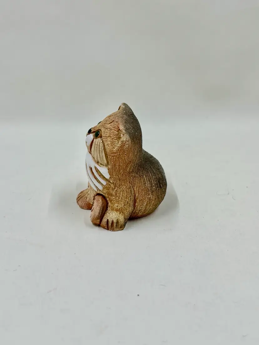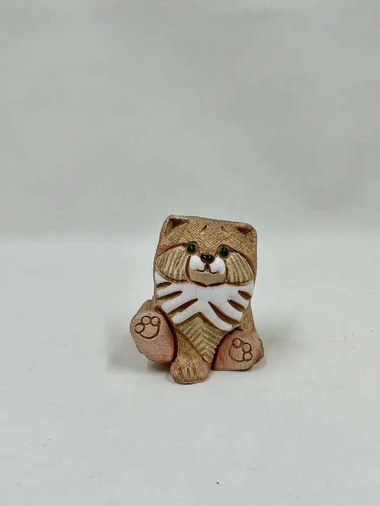 Artesania Rinconada art pottery Somali cat/kitten. Retired design. Measures 1.75” high, 1.5” wide, 1.5” deep