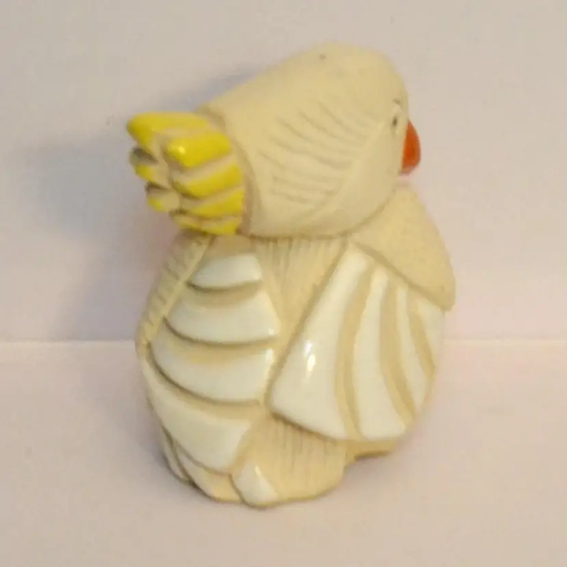 This bird figurine has an artist mark on the bottom. 2 3/4 inches tall, 2 1/8 wide.