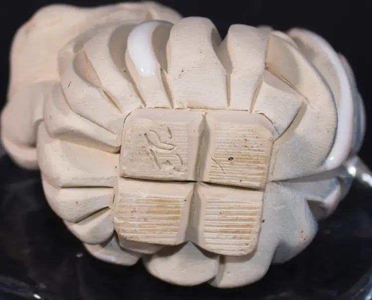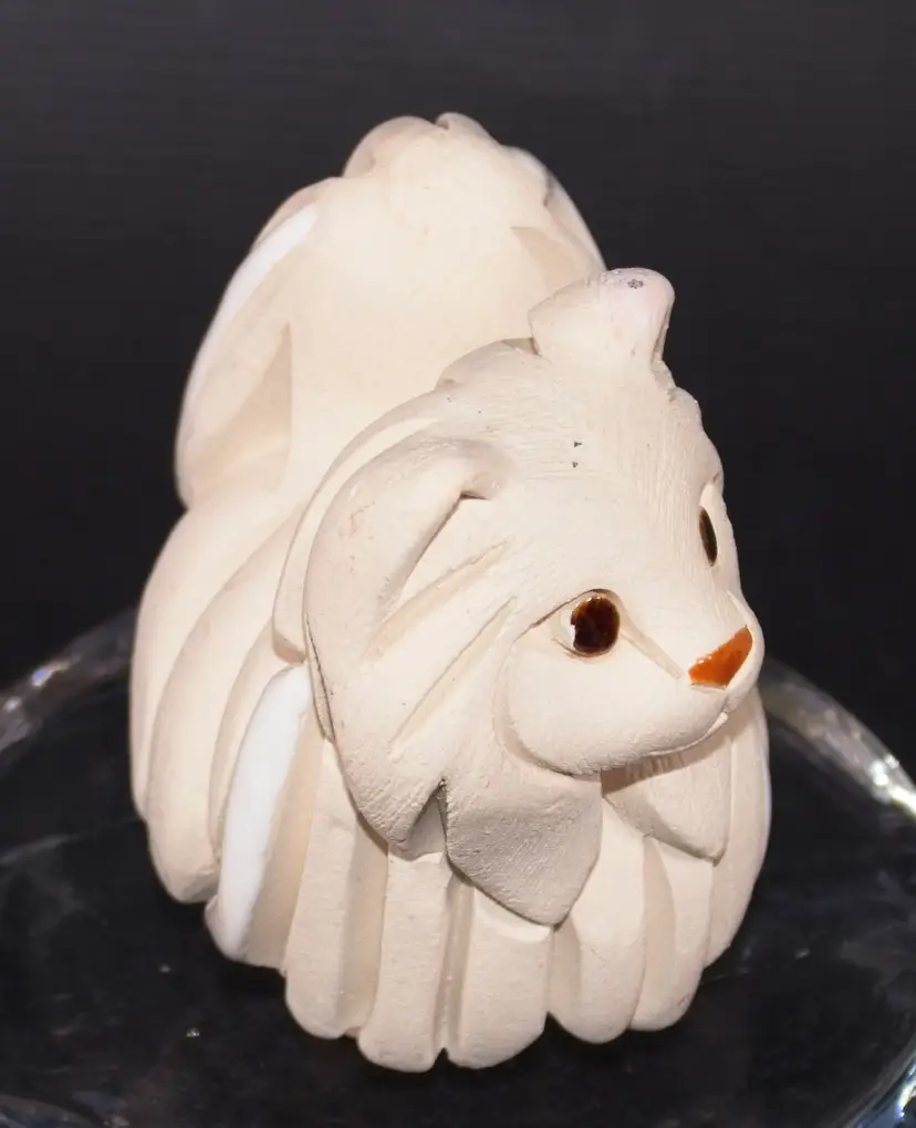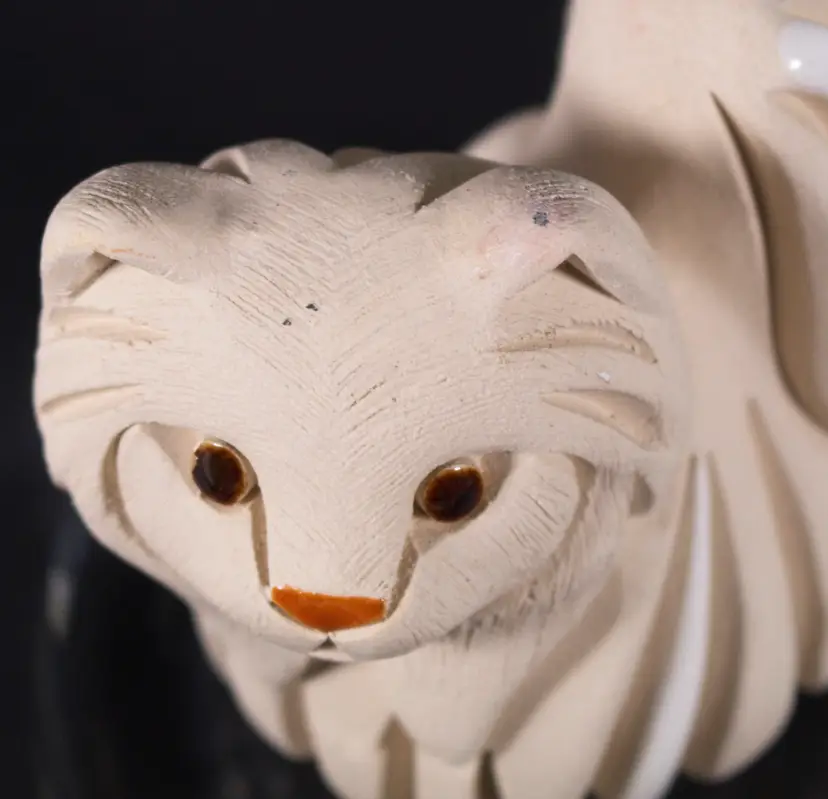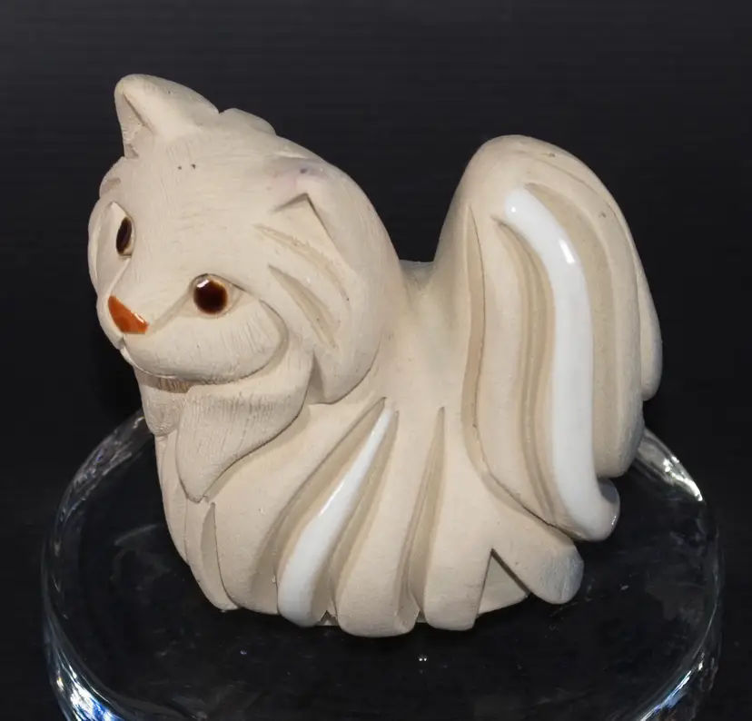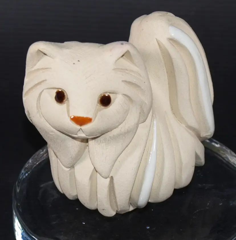 Artesania Rinconada Persian Cat Figurine Stoneware Hand Made in Uruguay 3" Tall. There are a few minor dark spots on the head. See pictures. Otherwise in good condition. 2.25" long x 2" wide x 3" tall