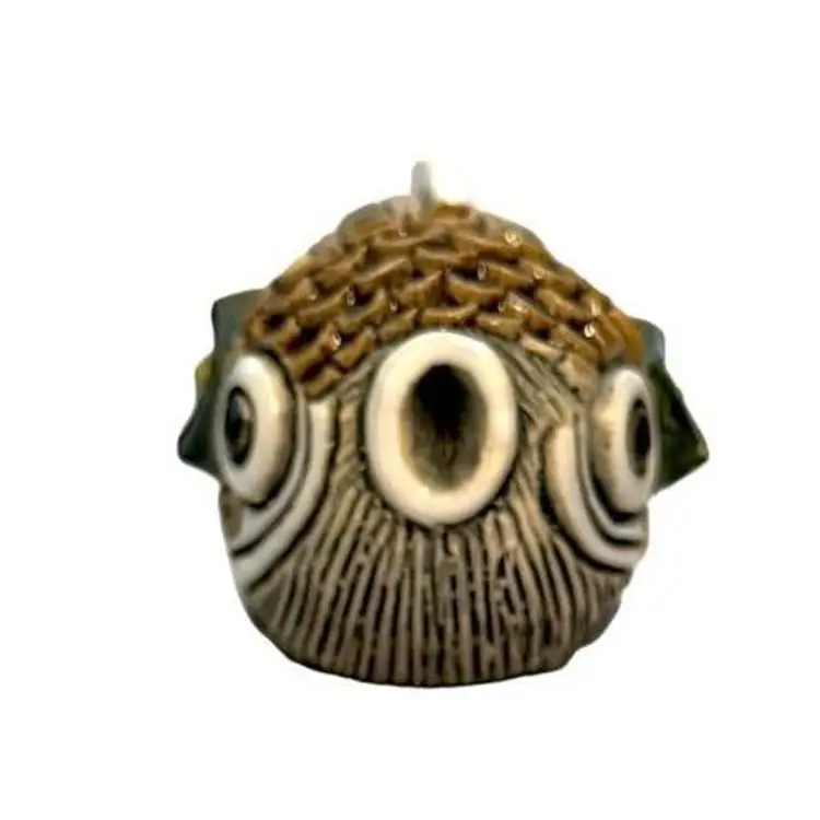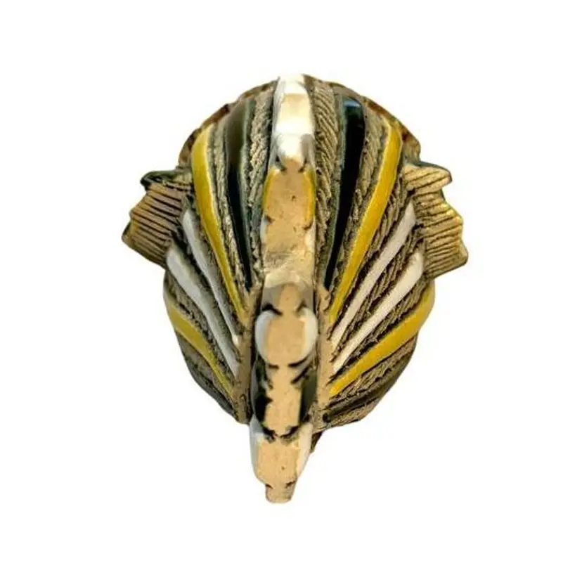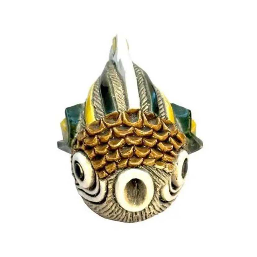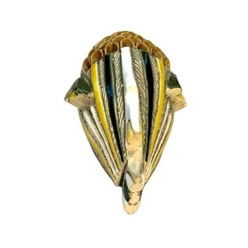 1970s - 1980s Tropical Fish Enamel Gloss Highlights on Matte Clay Green, Yellow and White Accents