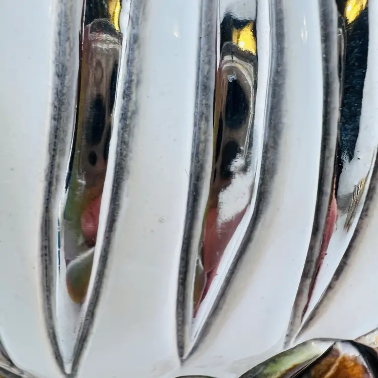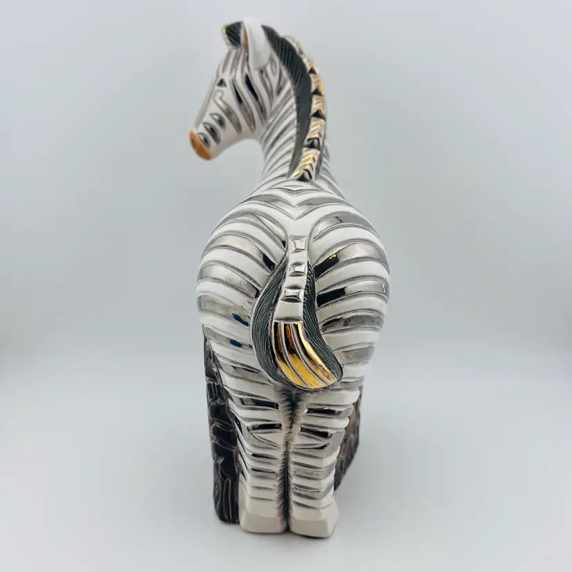 Absolutely crazy awesome piece! I believe this has platinum glaze. There is one spot in back on one stripe that maybe the glaze kind of skipped? In next to last photo.