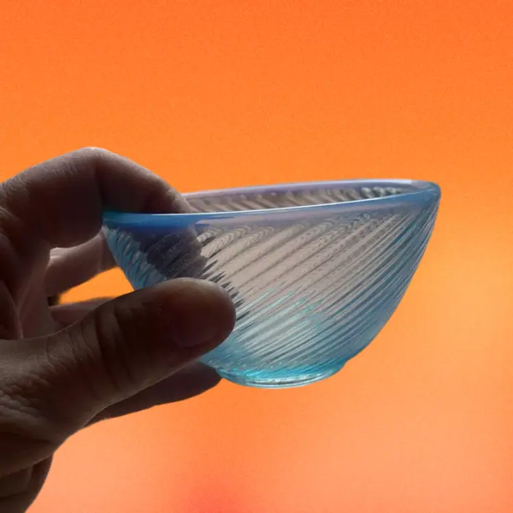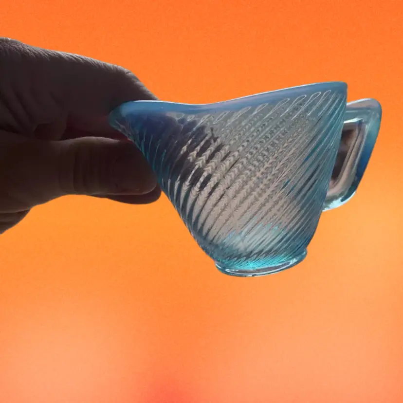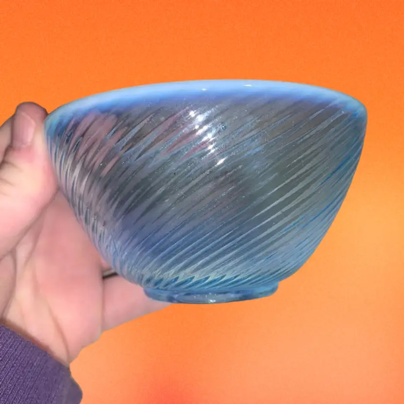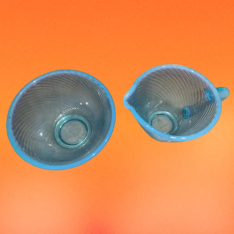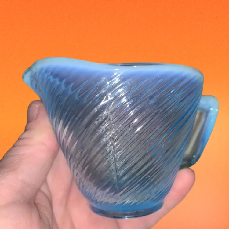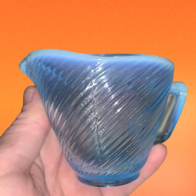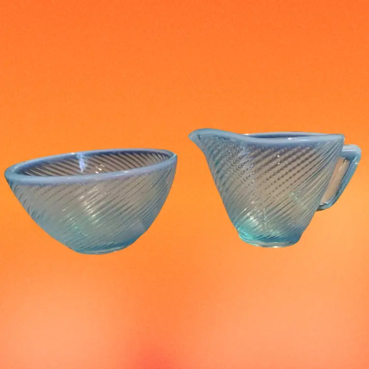 Vintage RARE Arthur Percy “Reffla” sky blue/aqua cream & sugar - Glass Swirl/Diagonal Ribbed Gorgeous! No chips or cracks. 3rd to last picture shows a maker flaw - it is not a crack