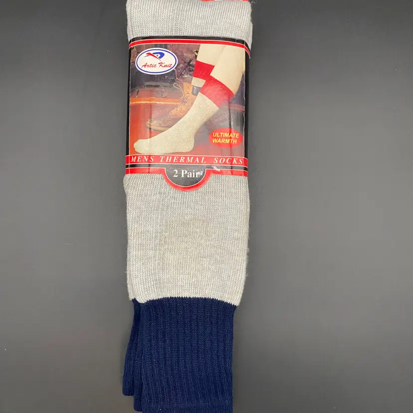 You are purchasing a 2-Pack of Vintage Men's Gray Thermal Socks by True-Fit and their Artic Knit collection. These are Size 10-15 Socks for Shoe Sizes 7-12. These Socks are new in their original packaging.
