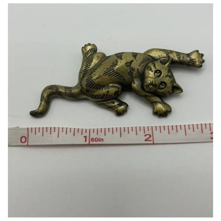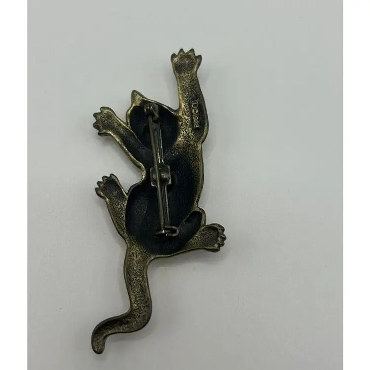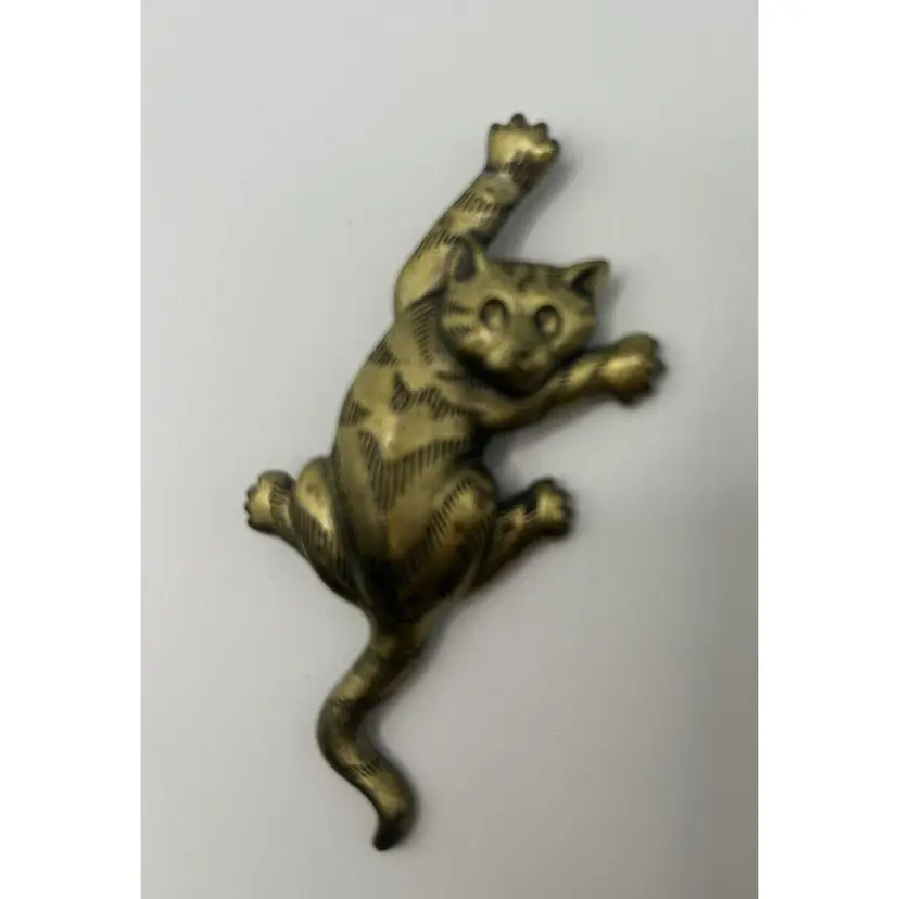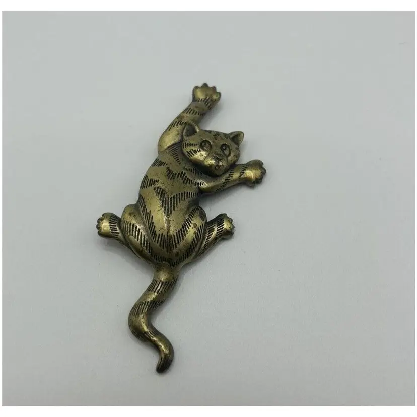 This is a vintage Jonette Jewelry JJ Brooch featuring a Trouble Cat climbing position design. The brooch is made of gold tone metal with a cat shape. It does not have any main stone and is suitable for both men and women.