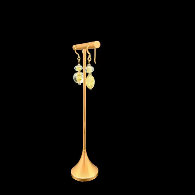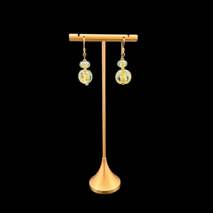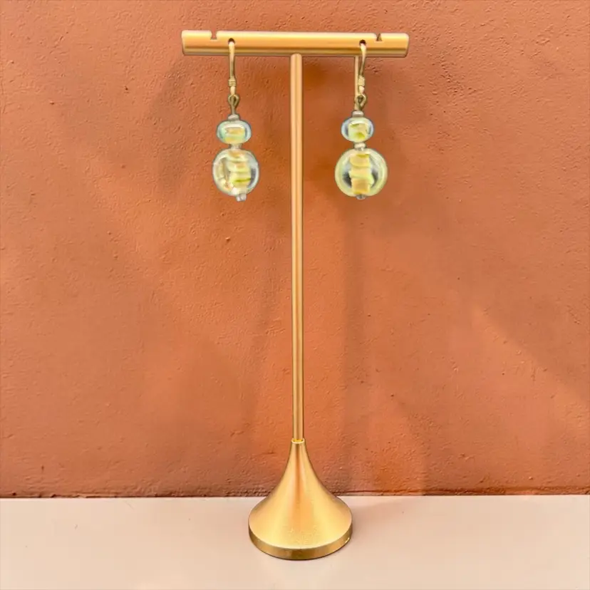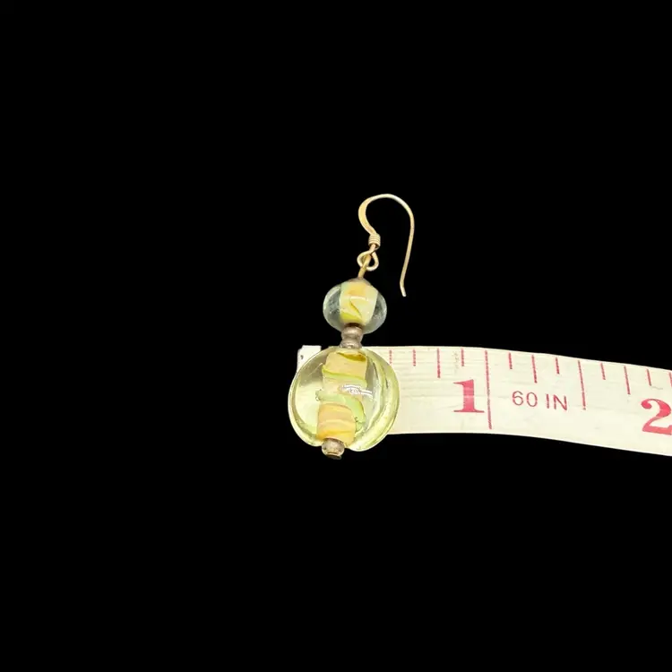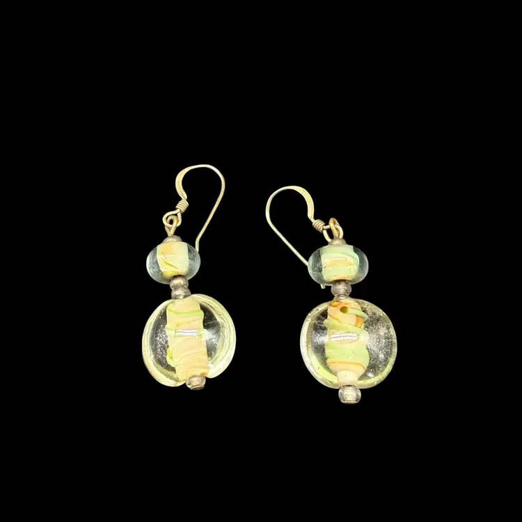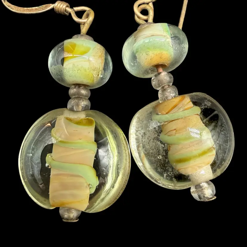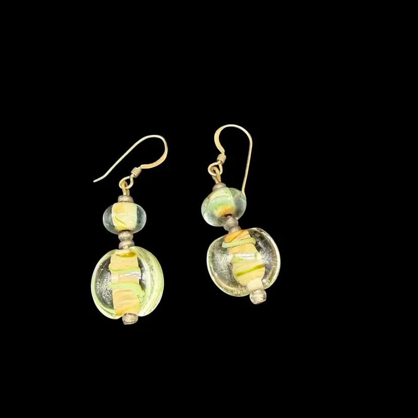 These artisan-made earrings feature pale green glass dangle drops on 14k gold filled hooks, making them ideal for everyday wear. The multicolor glass beads are beautifully crafted, adding a touch of beauty to any outfit. With a boho, beachy style, these earrings are perfect for those who appreciate art and unique fashion pieces. The dangle/drop style and round shape of the main stones make them a standout accessory for any occasion.