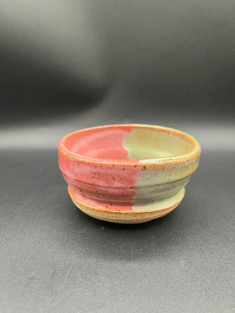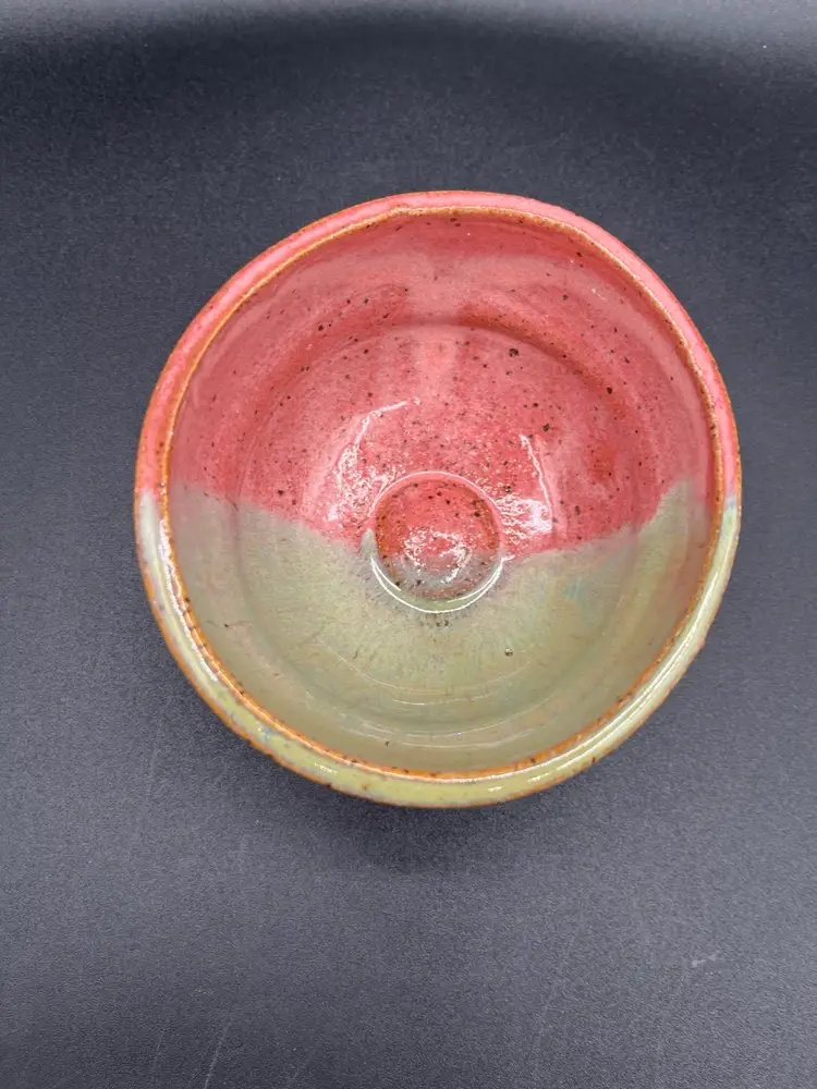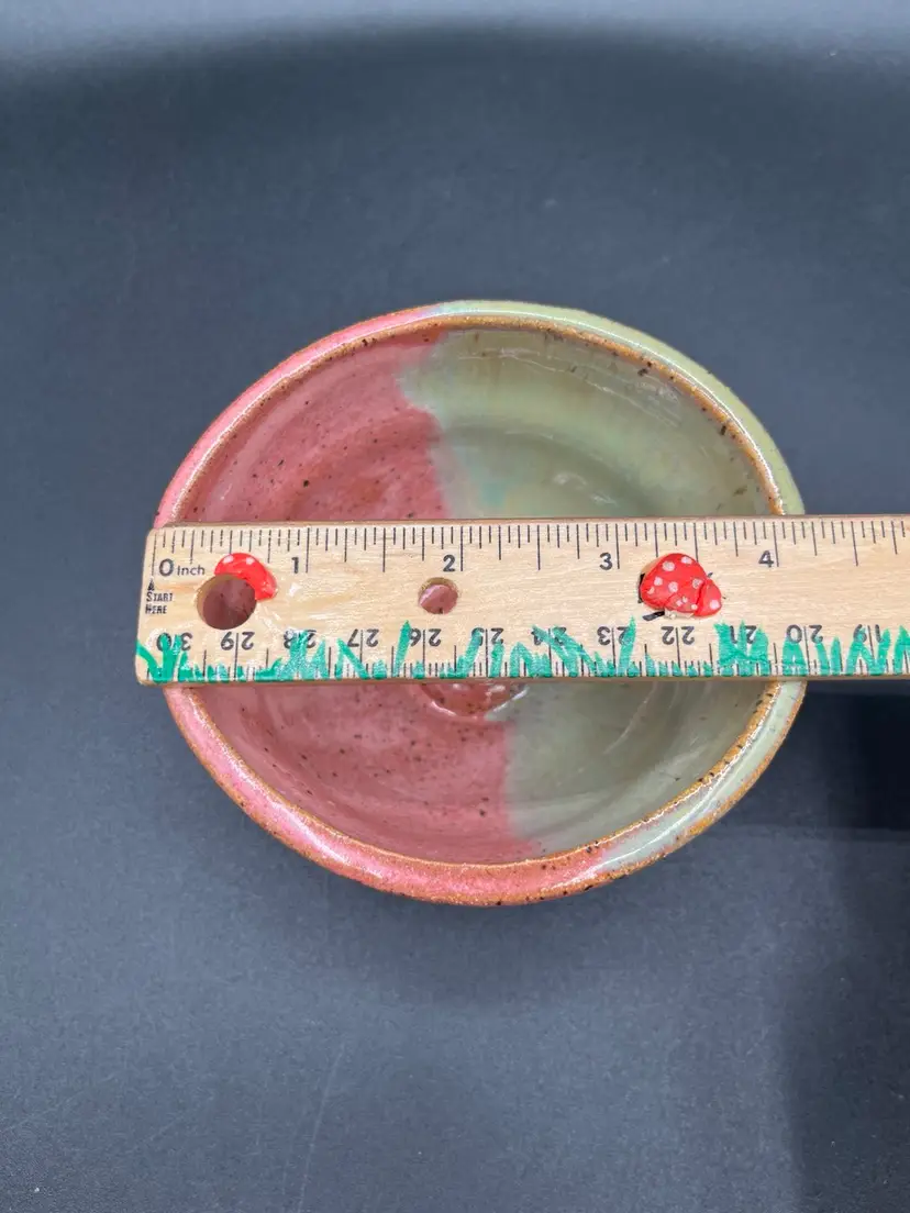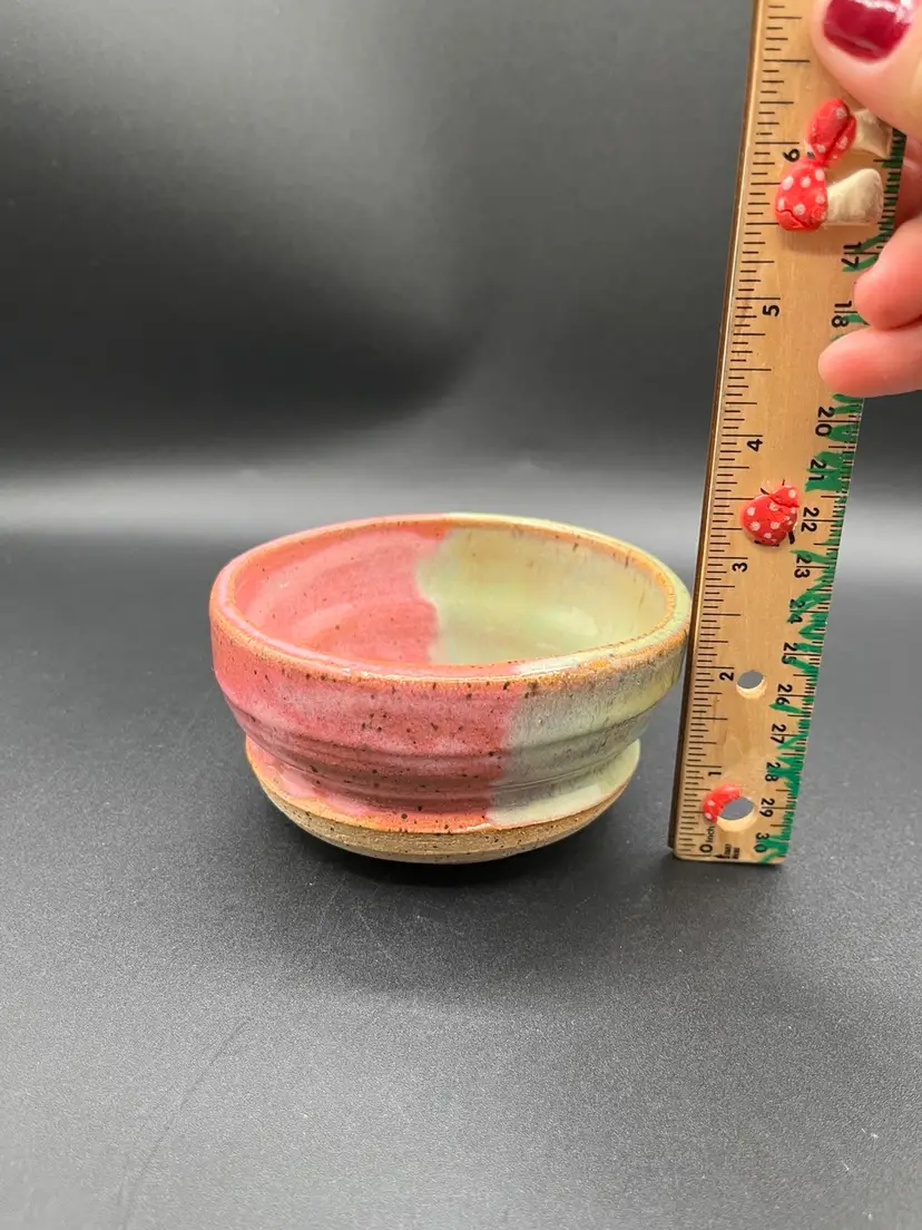 Signed Artisan Made Art Pottery Pink And Green Catch All Bowl Dish 4”