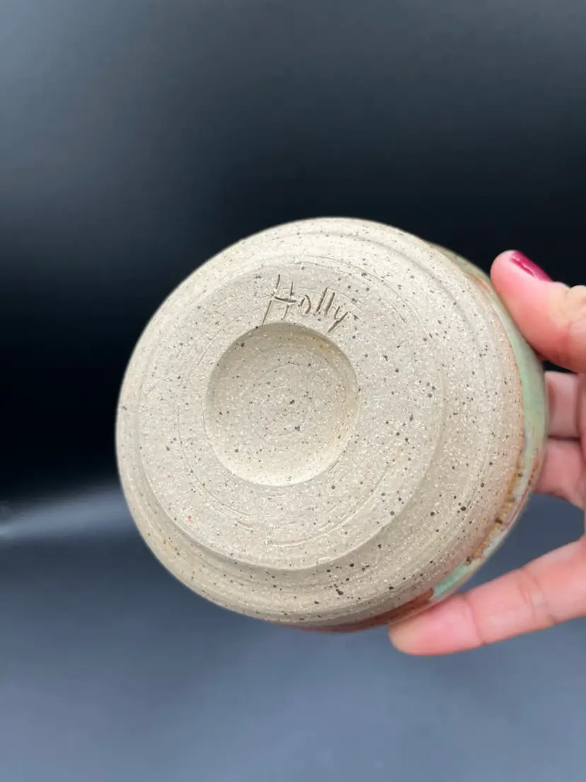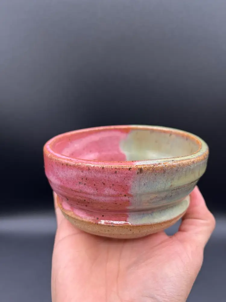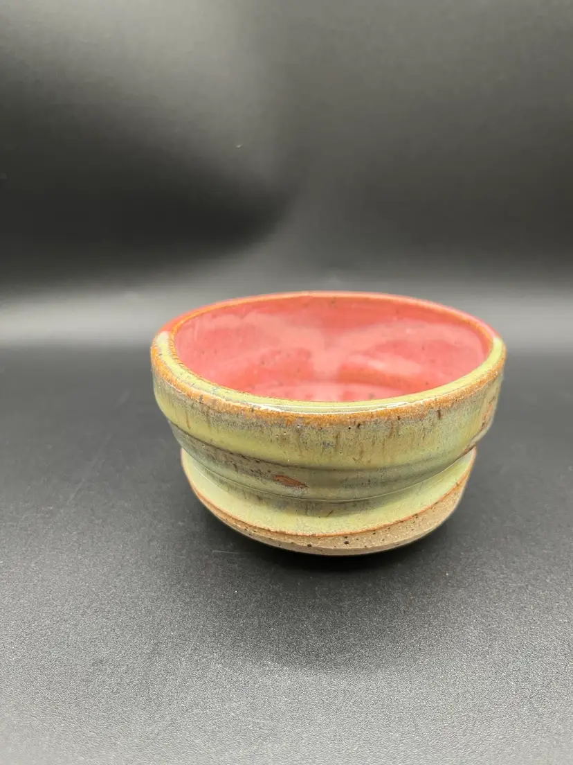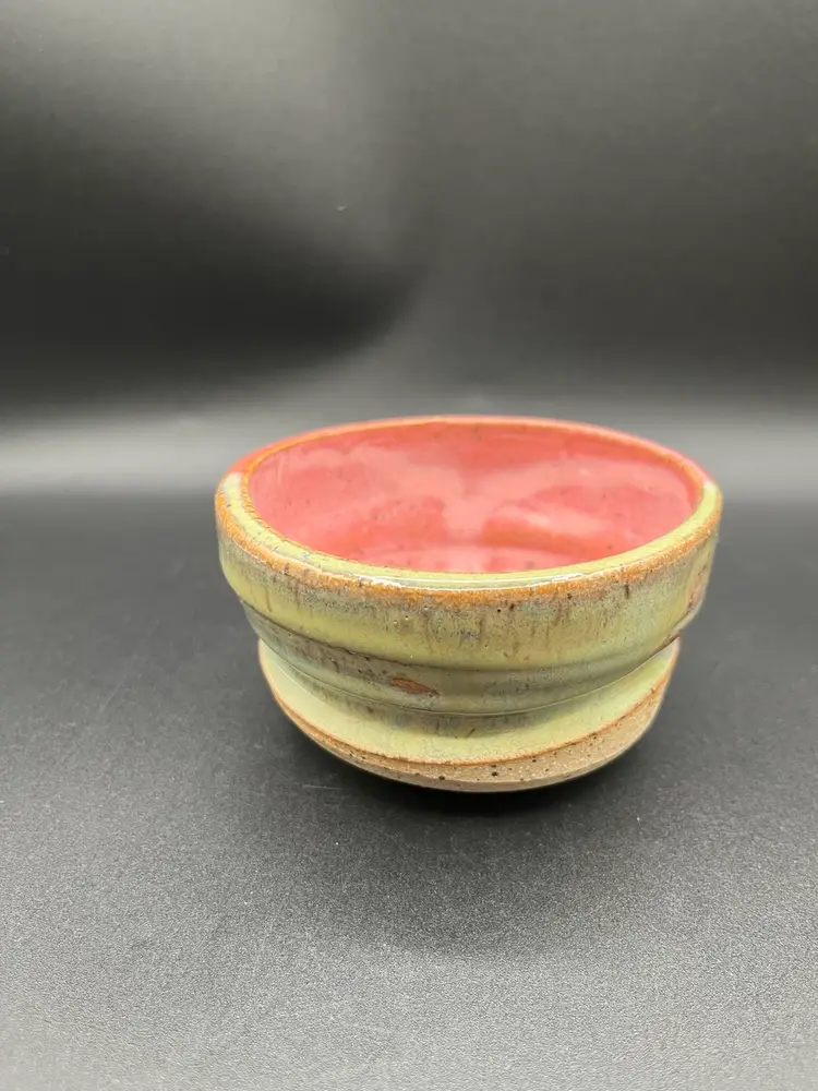 Signed Artisan Made Art Pottery Pink And Green Catch All Bowl Dish 4”