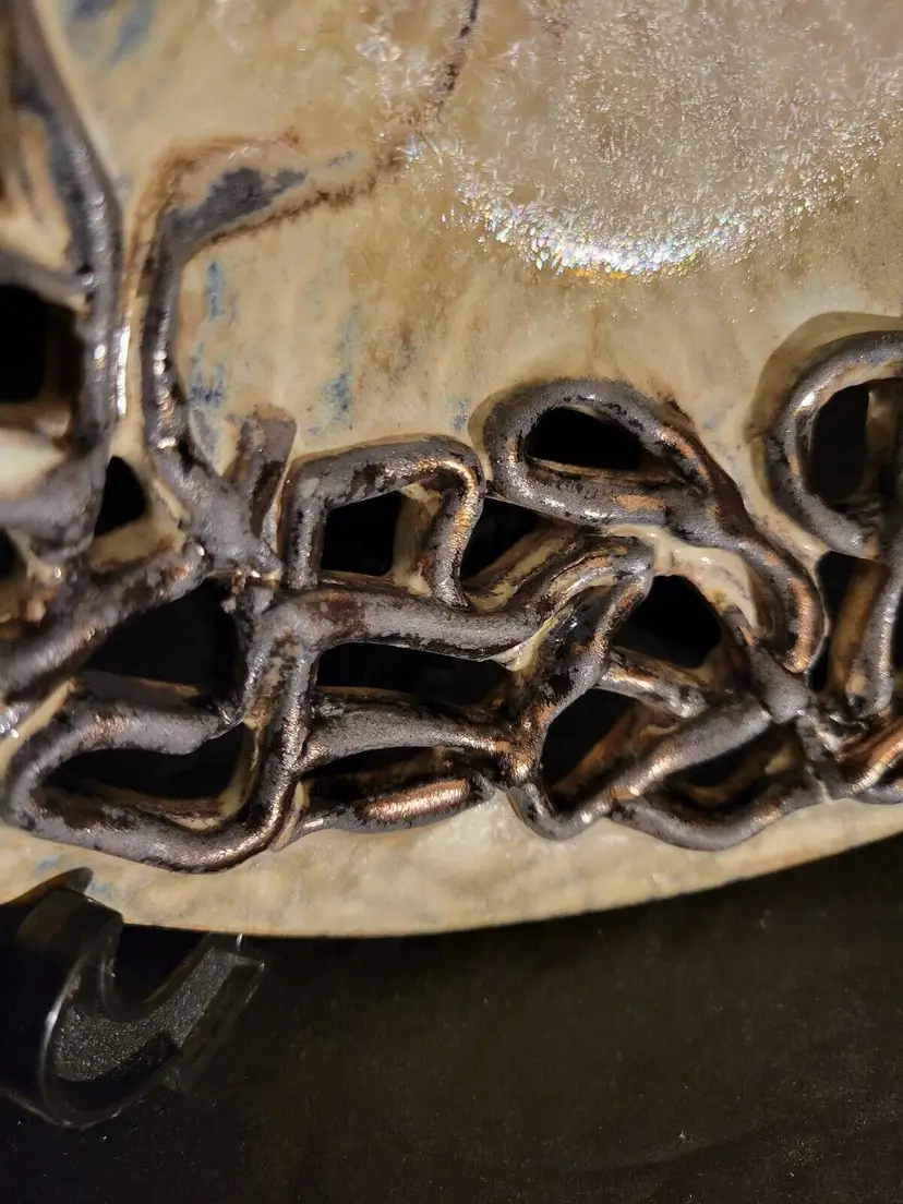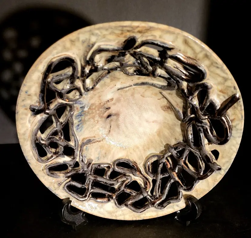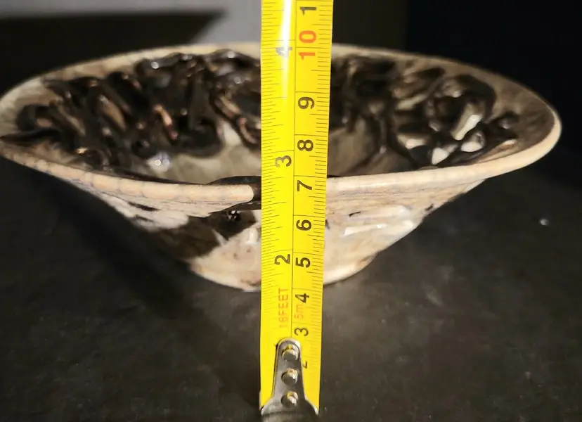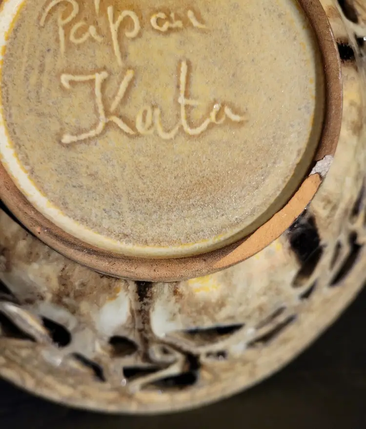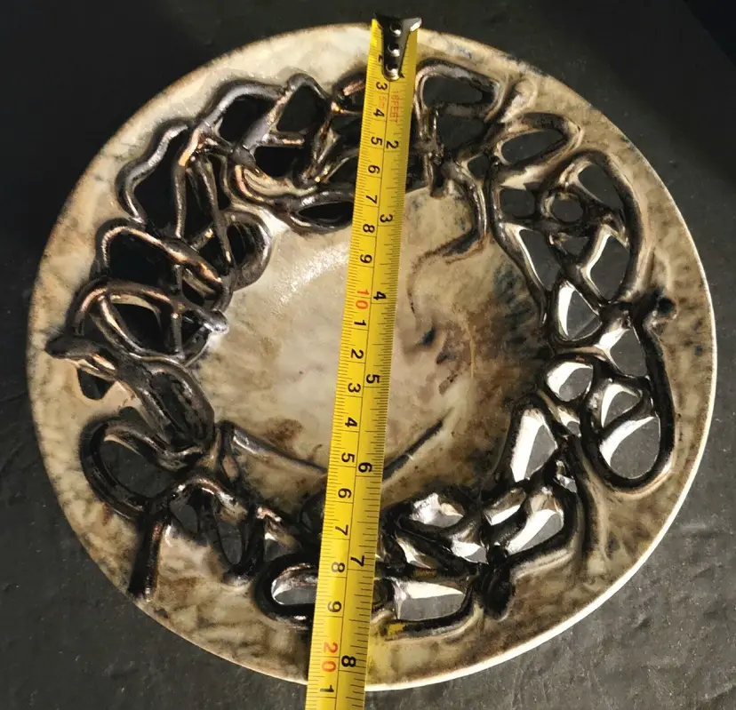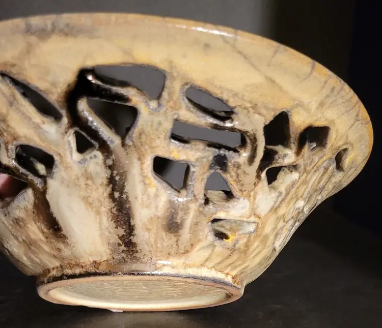 Brand: Studio Pattern: Vintage Type: pierced bowl Color: Beige Style: Mid-Century Modern Set Includes: Bowl Material: Clay Features: Decorative, Hand Painted Production Style: Art Pottery Finish: Glossy Handmade: Yes Vintage: Yes