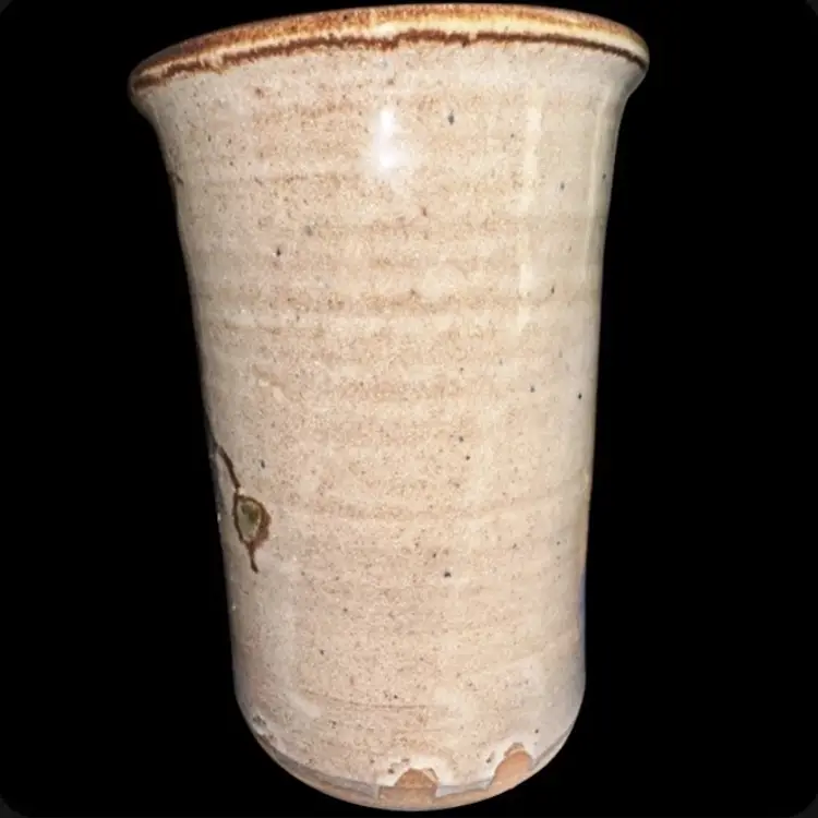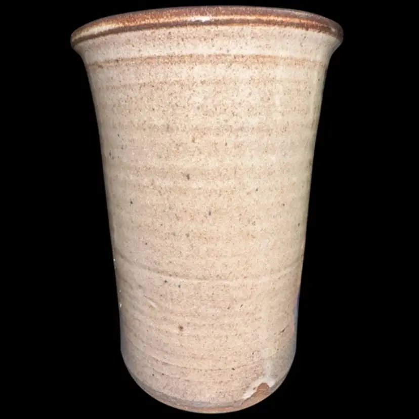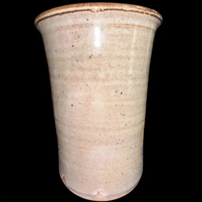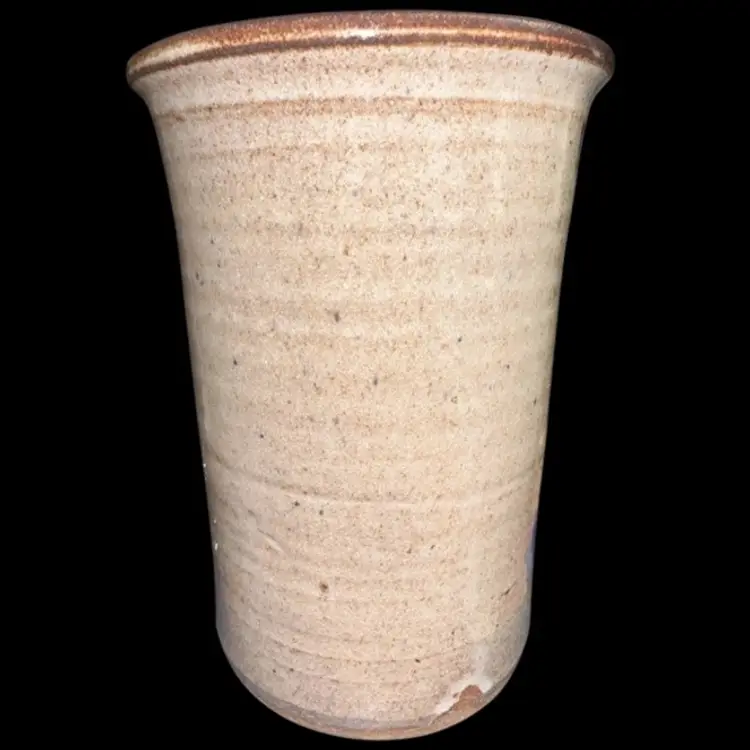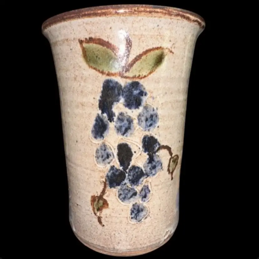 Artisan Signed Pottery Vase Utensil Holder Grape Motif 7.5”T x 5.25”D Excellent condition!