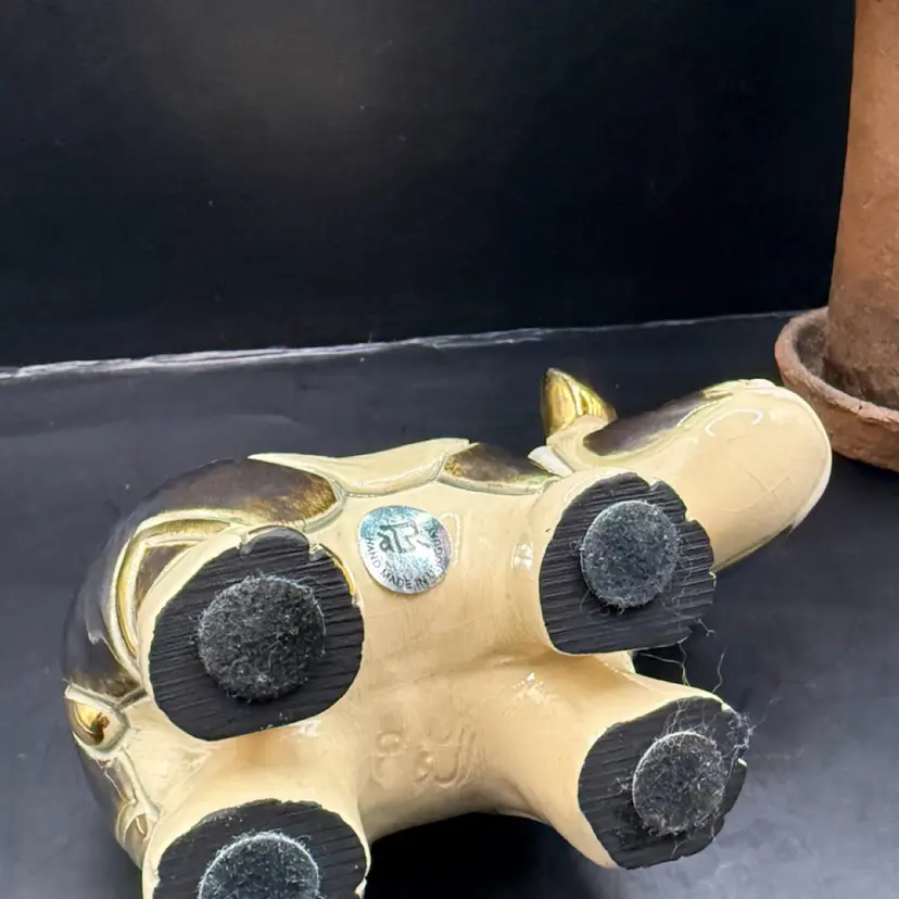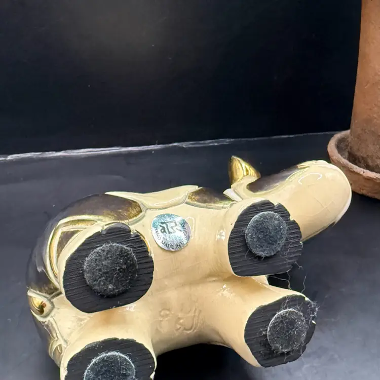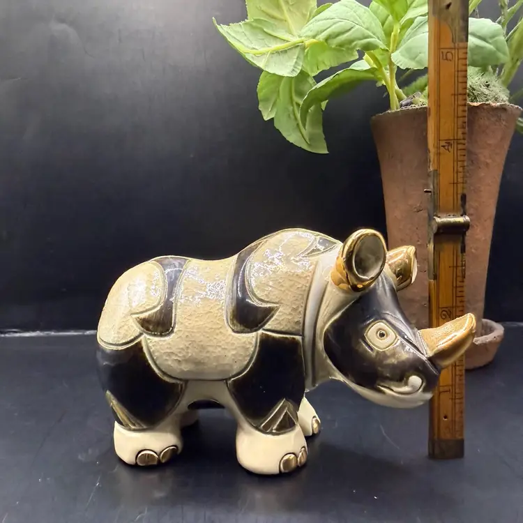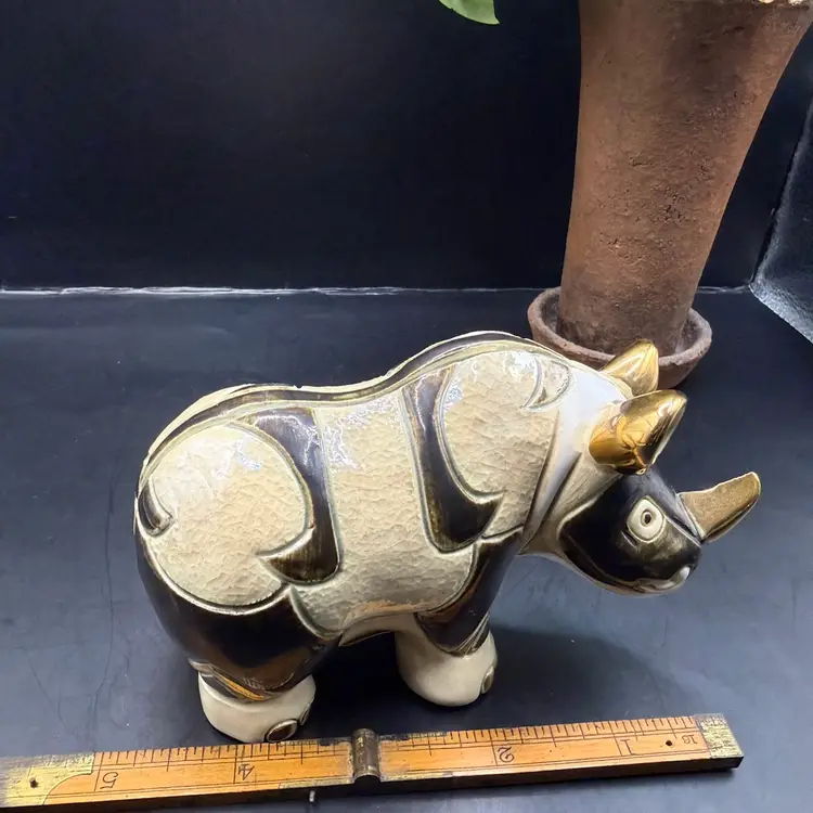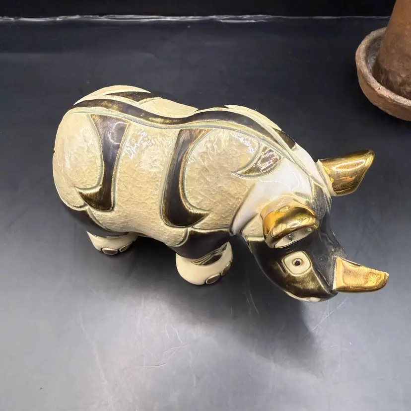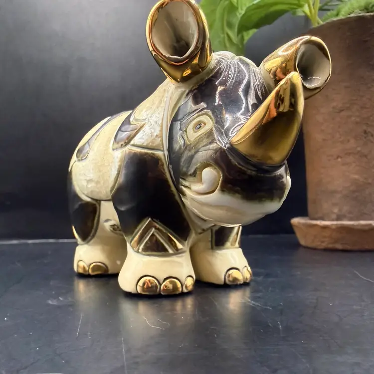 Artisania Rinconada De Rosa Gold & Platinum Glazed Rhinoceros Pottery Figurine 5x3”