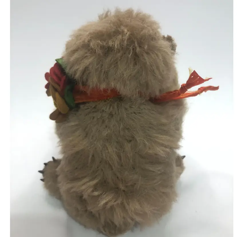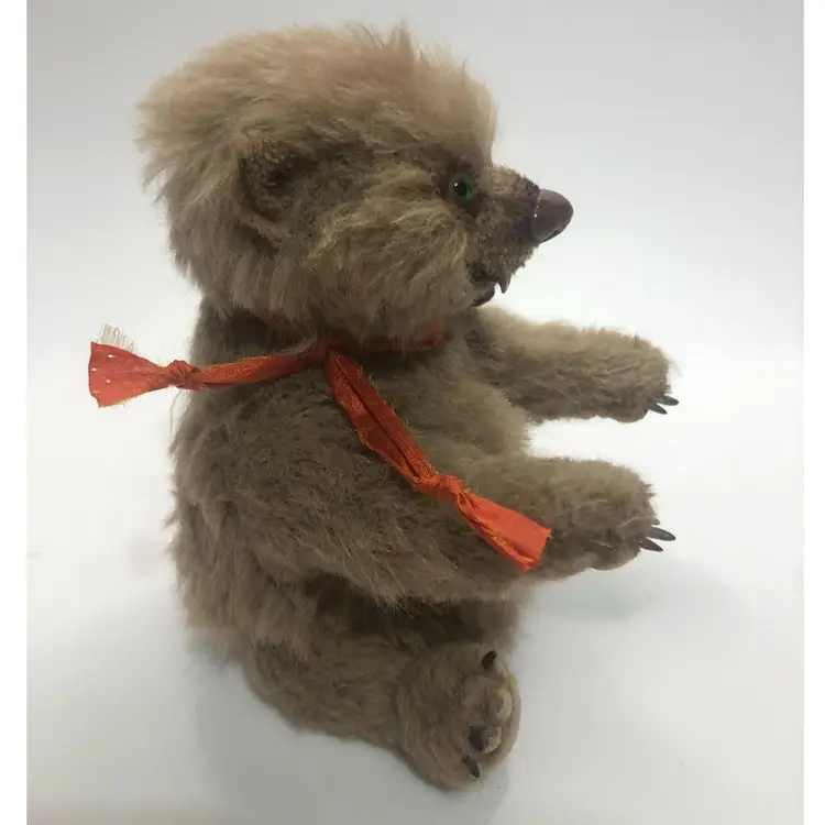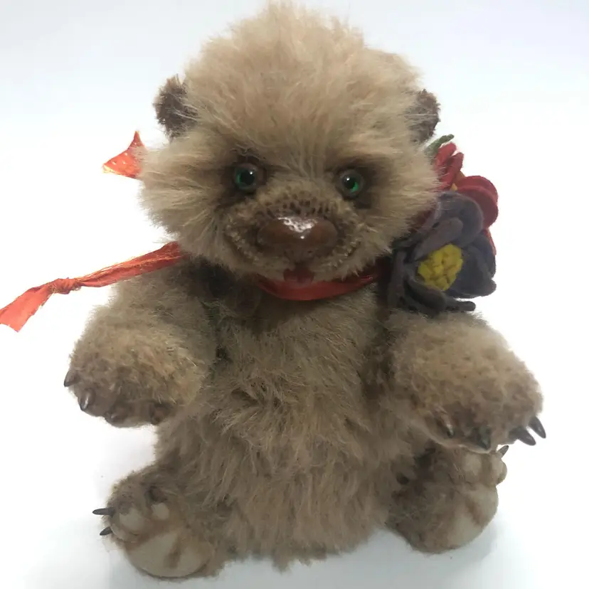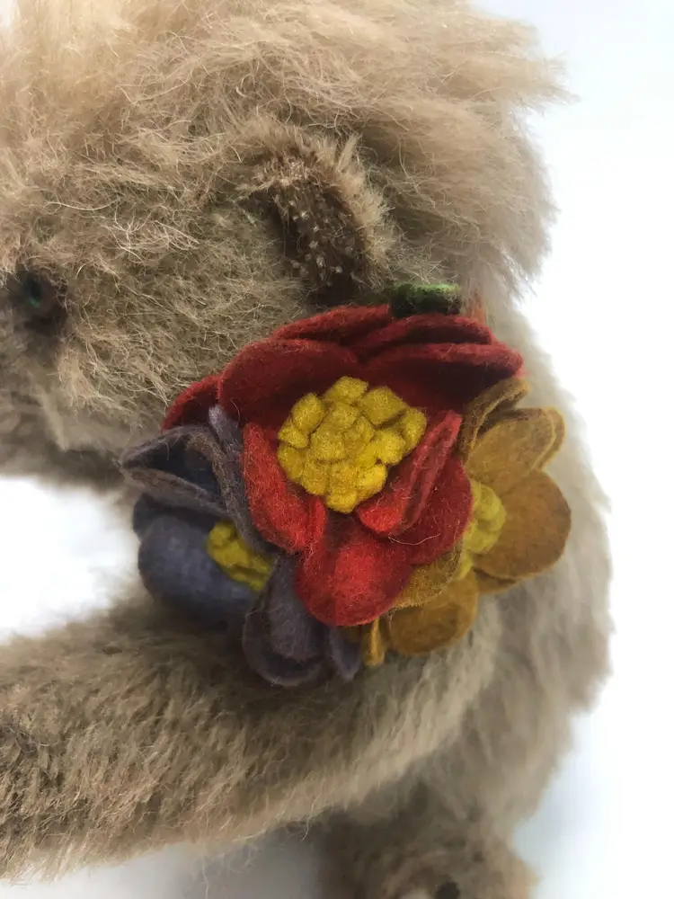 The growth of the bear around 7.8", 20 cm, USED MATERIALS: German mohair EYES: German glass JOINTS: Fully 5-way jointed with cotter-pins and cardboard disks. Inside the artificial balls and granulate. Bear tinted with oil paint Flowers made of felt and tinted coffee