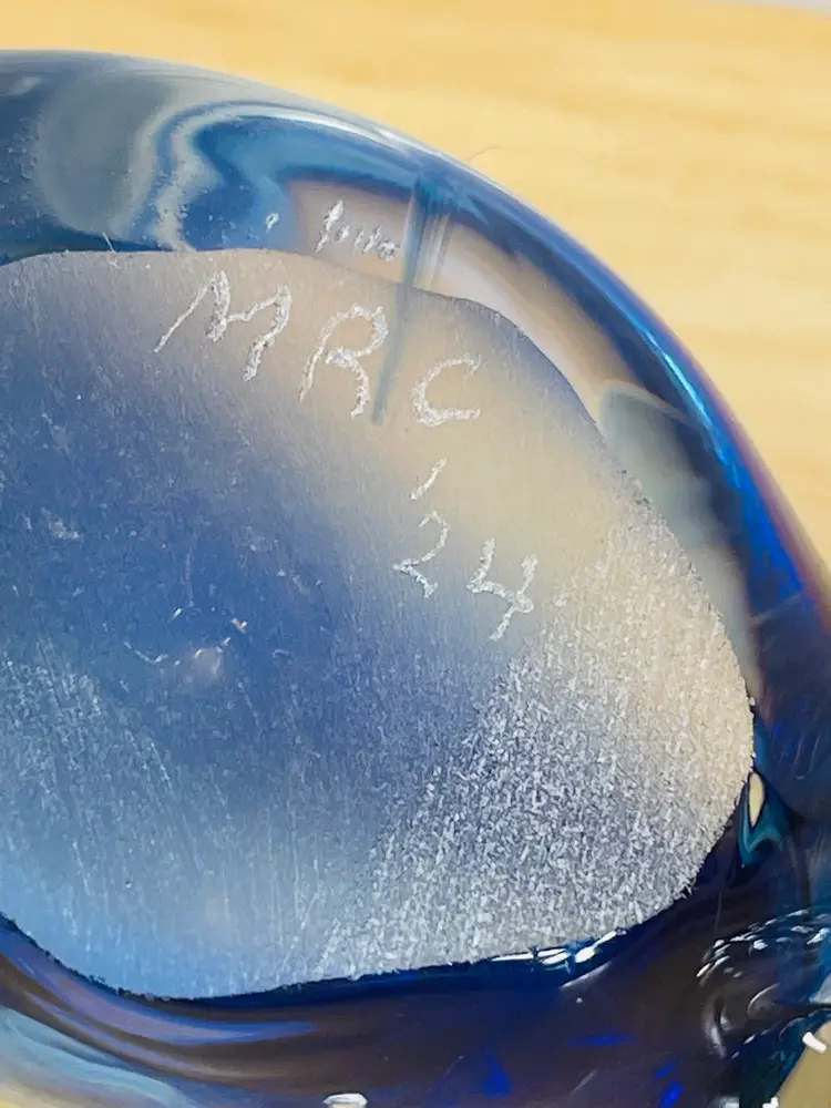 Artist signed bird paperweight. An adorable, little bird looking for his forever home! Signed MRC 24 on the bottom- I assume this means that it was made in 2024, which is a record for the most modern paperweight I have ever found! There are no chips, cracks, or bruises! He's approximately 3 inches long.
