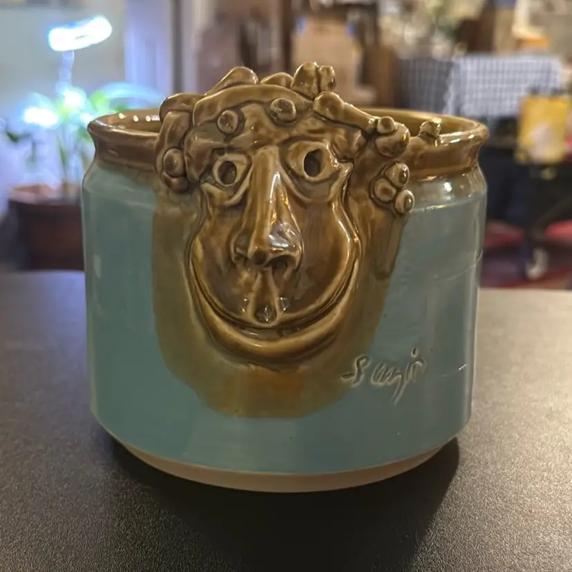 Artist-Signed Face Studio Pottery - 4.5” tall and 5.5” in diameter