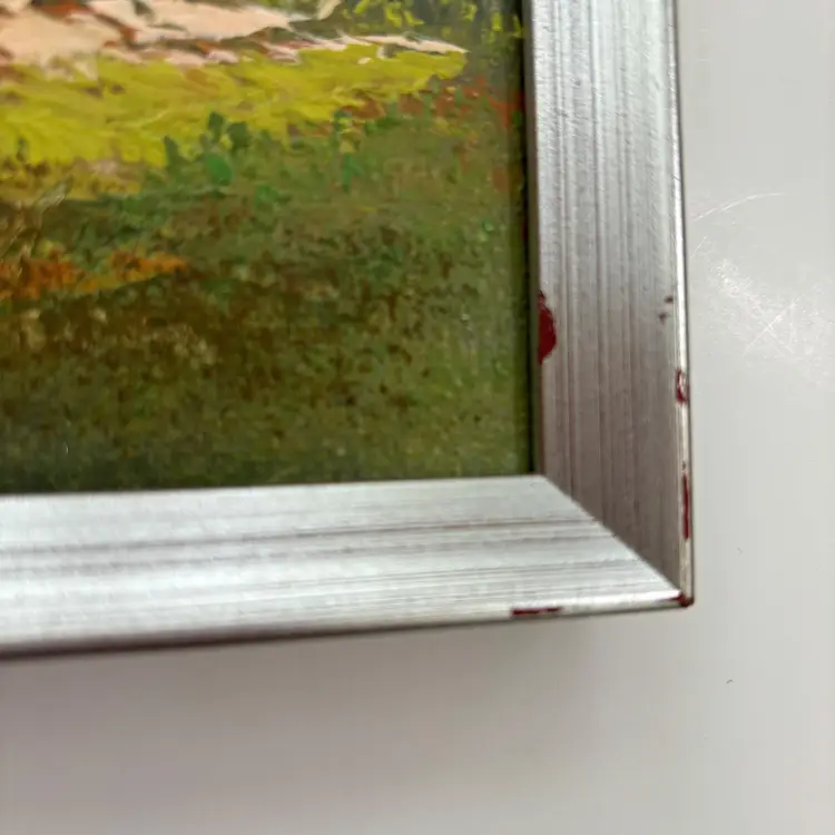 Frame shows wear, measures approx. 9” x 11”.