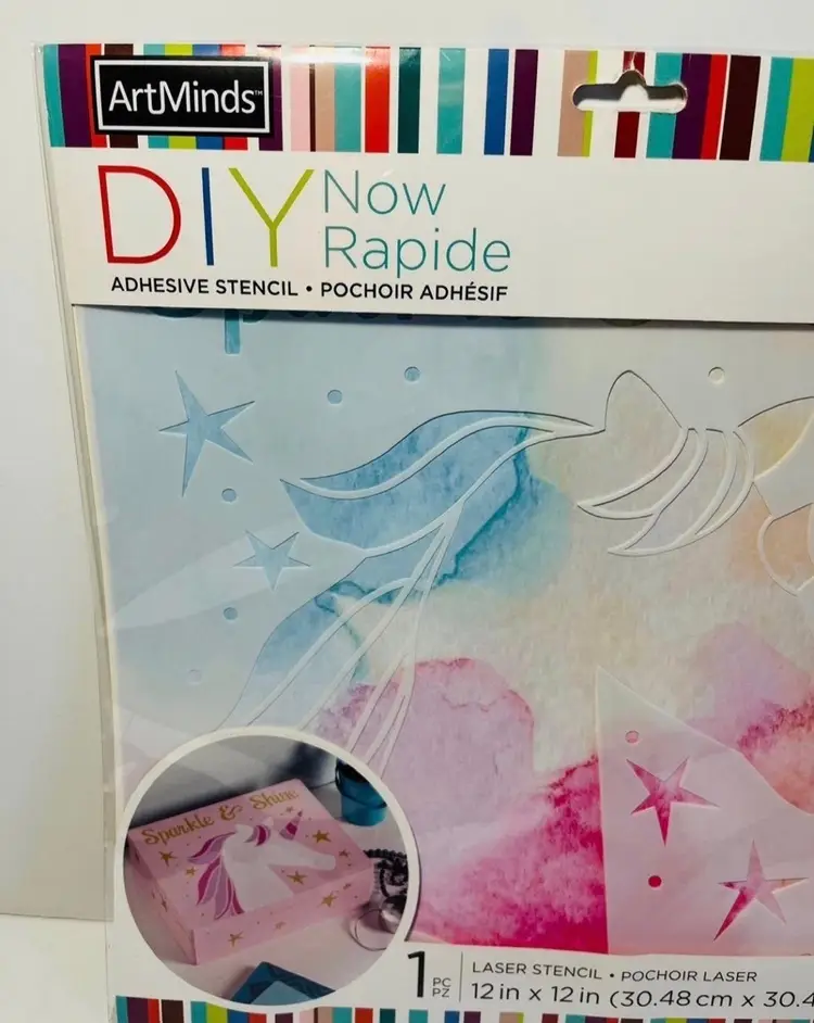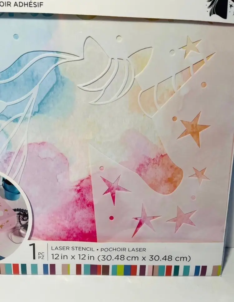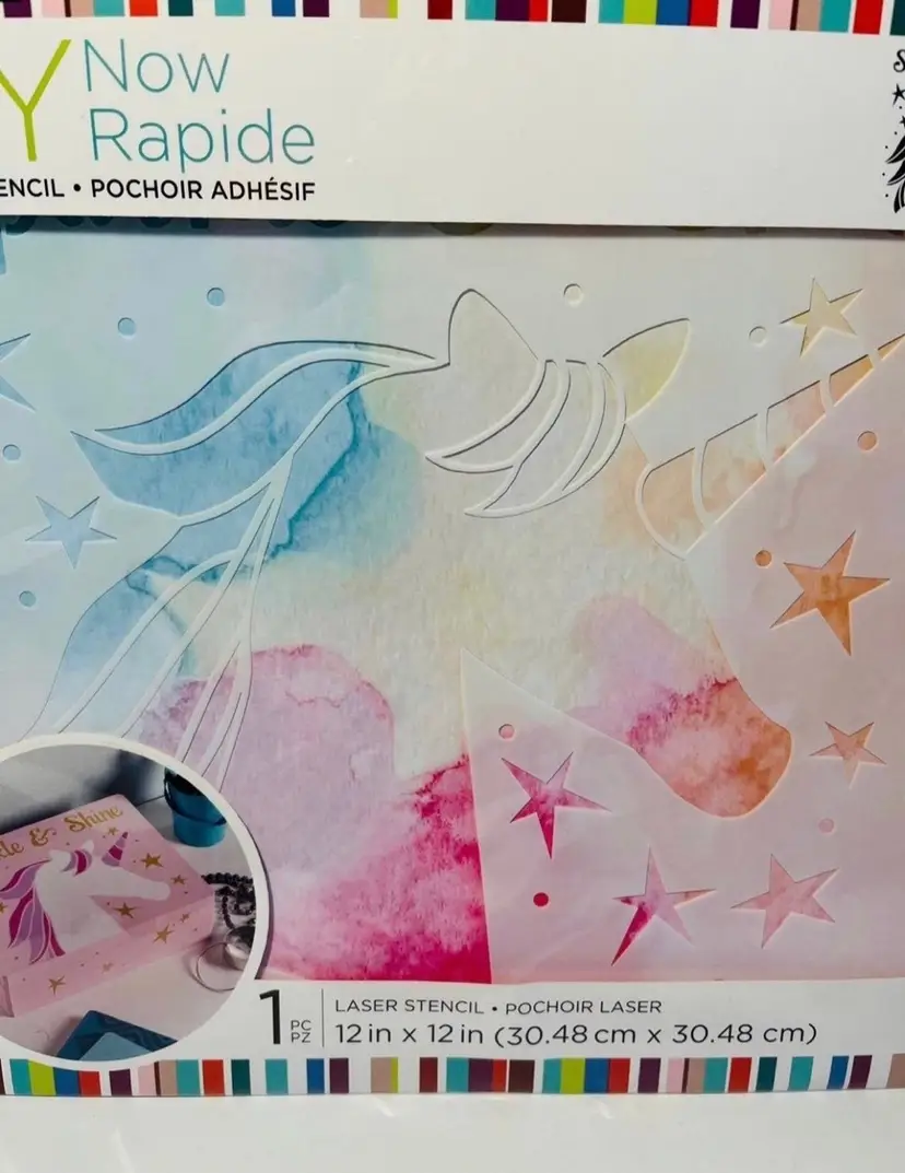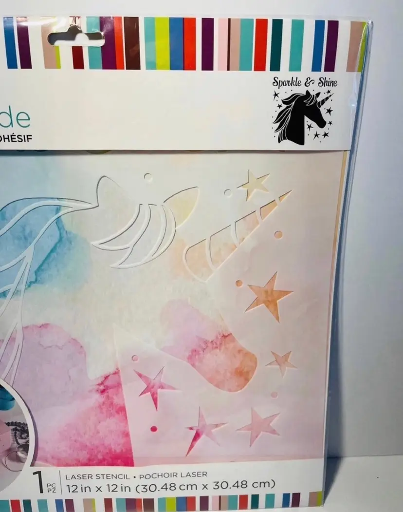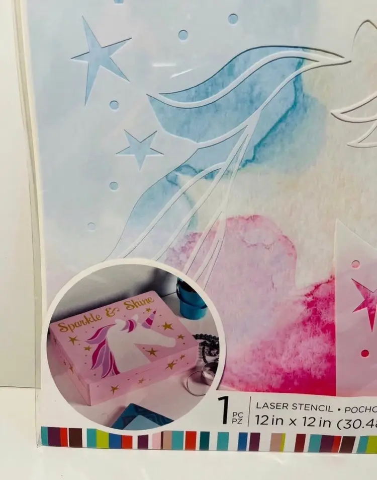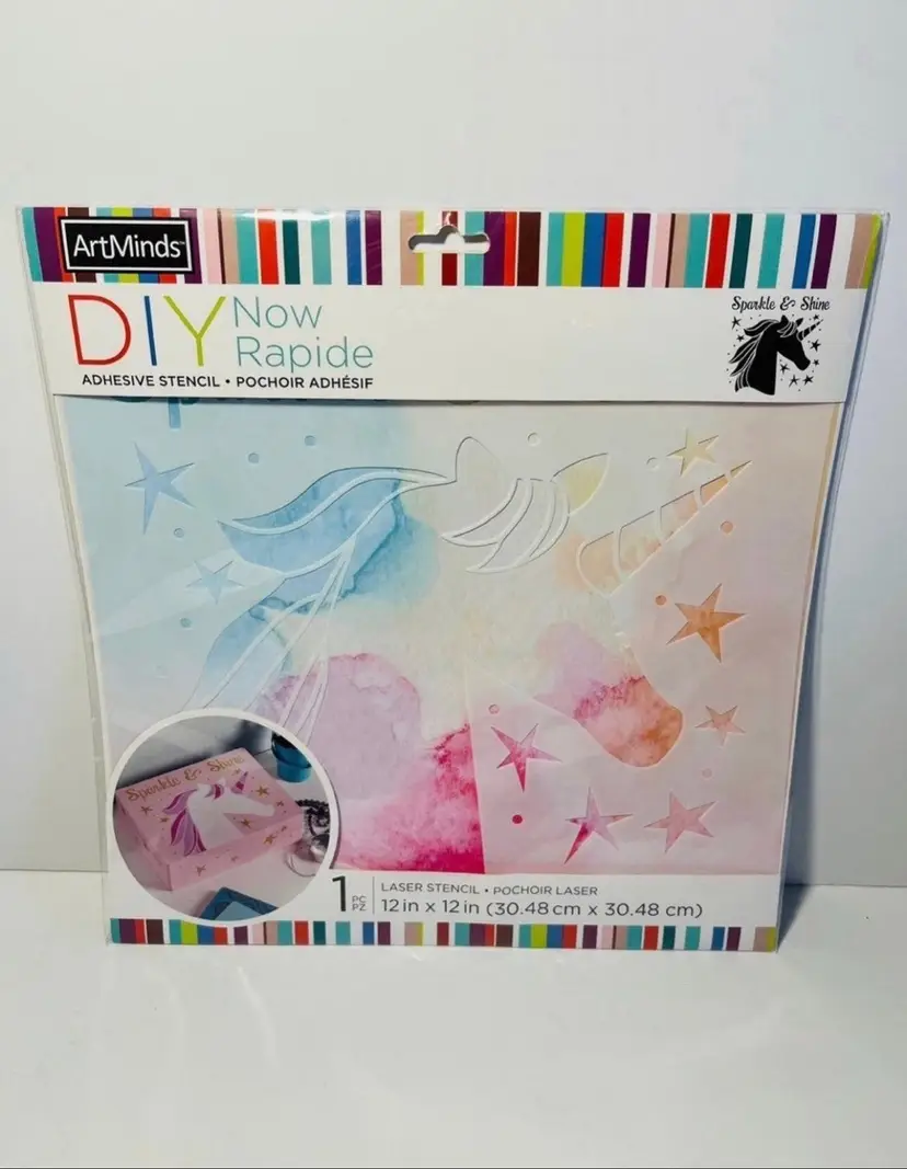ArtMinds DIY unicorn adhesive sparkle & shine laser stencil 12” x 12” New and sealed Shipped in a poly mailer