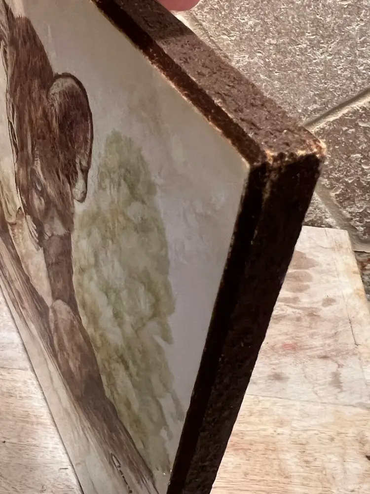 It is a lithograph print mounted on wood.