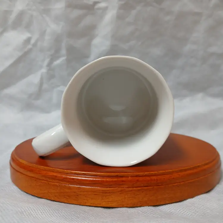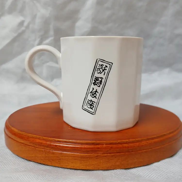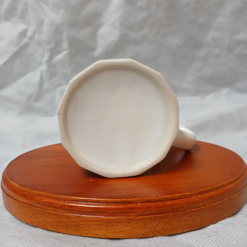 Couldn't find out much about this piece, but it's just cool. Measuring just 2 3/4 inches tall, it's sized as a traditional teacup. Excellent condition with no wear or chips. If you can read the inscription, let me know what it says.