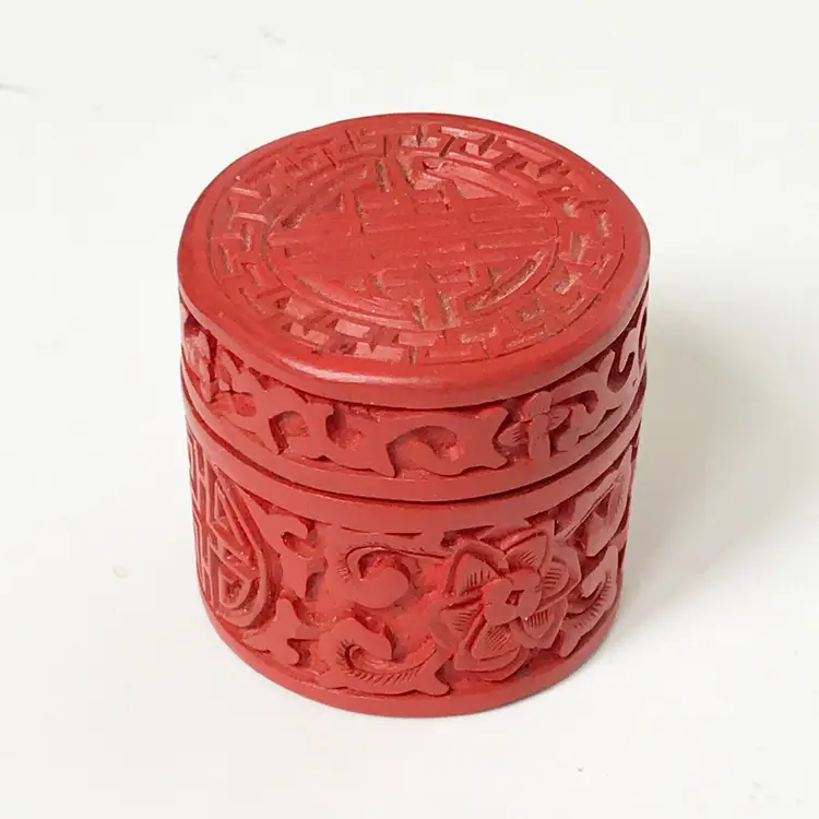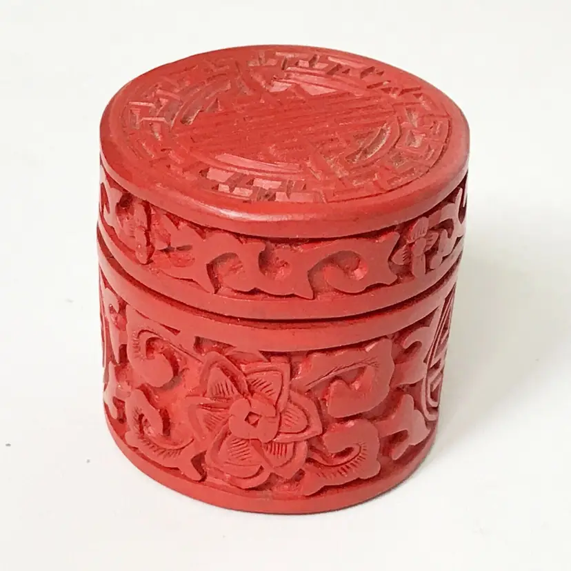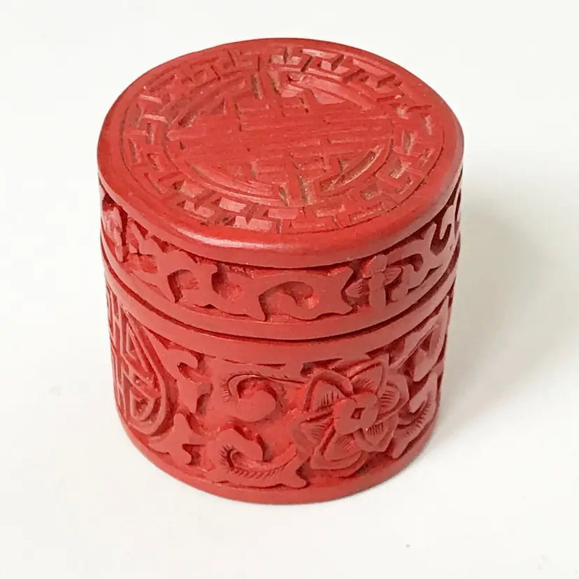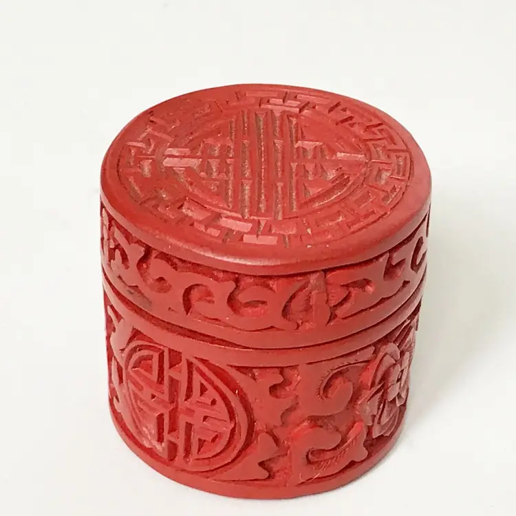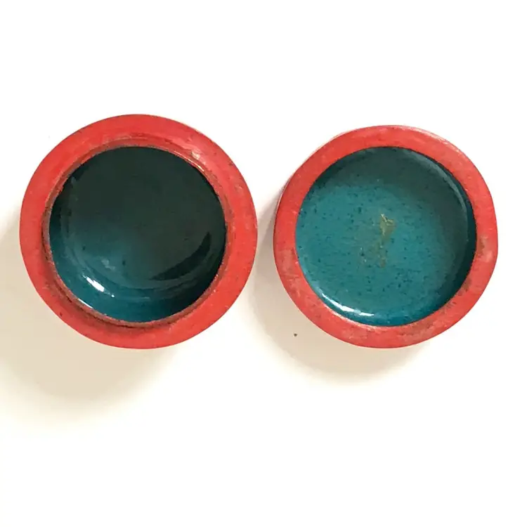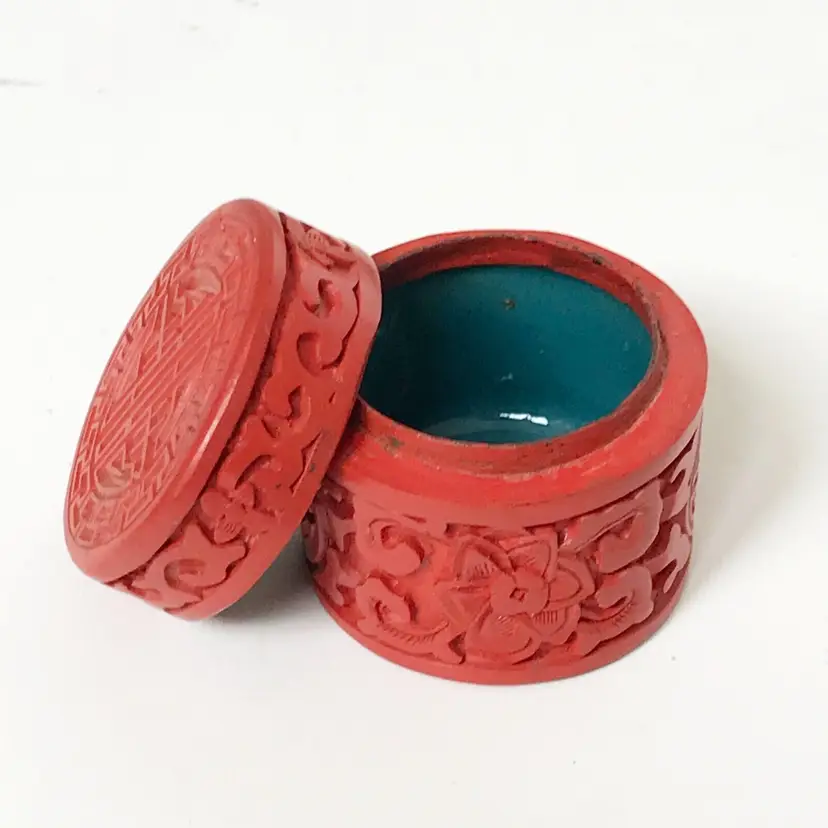 Features an intricately carved design on the exterior, a lid, and teal enamel interior.