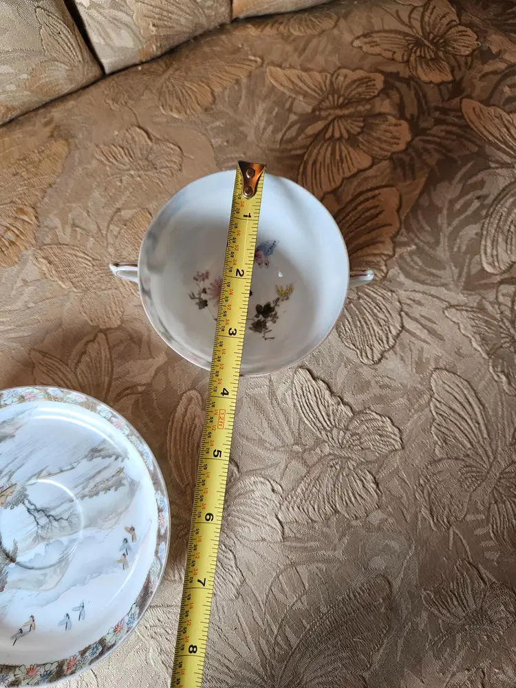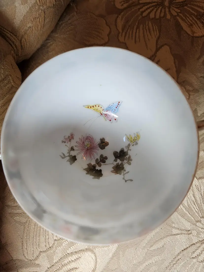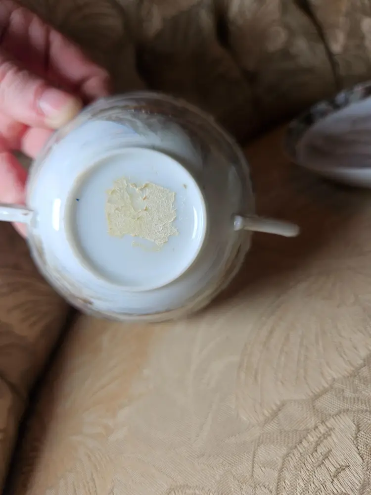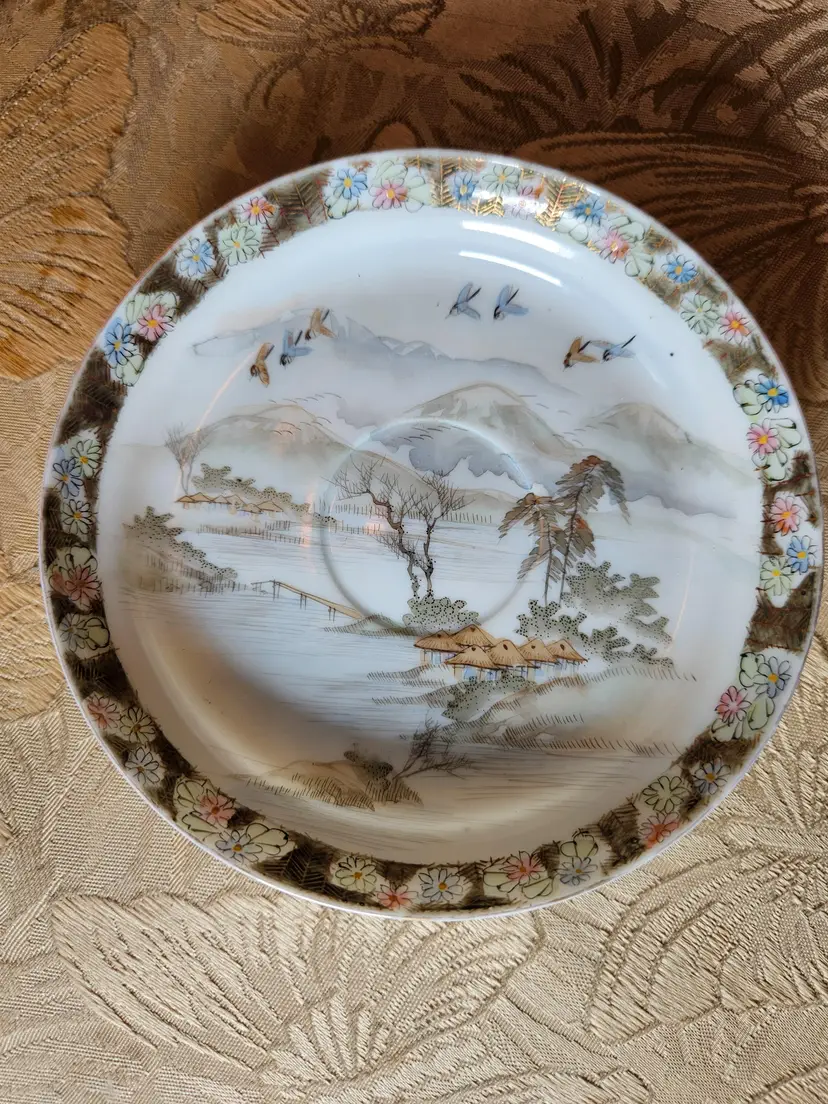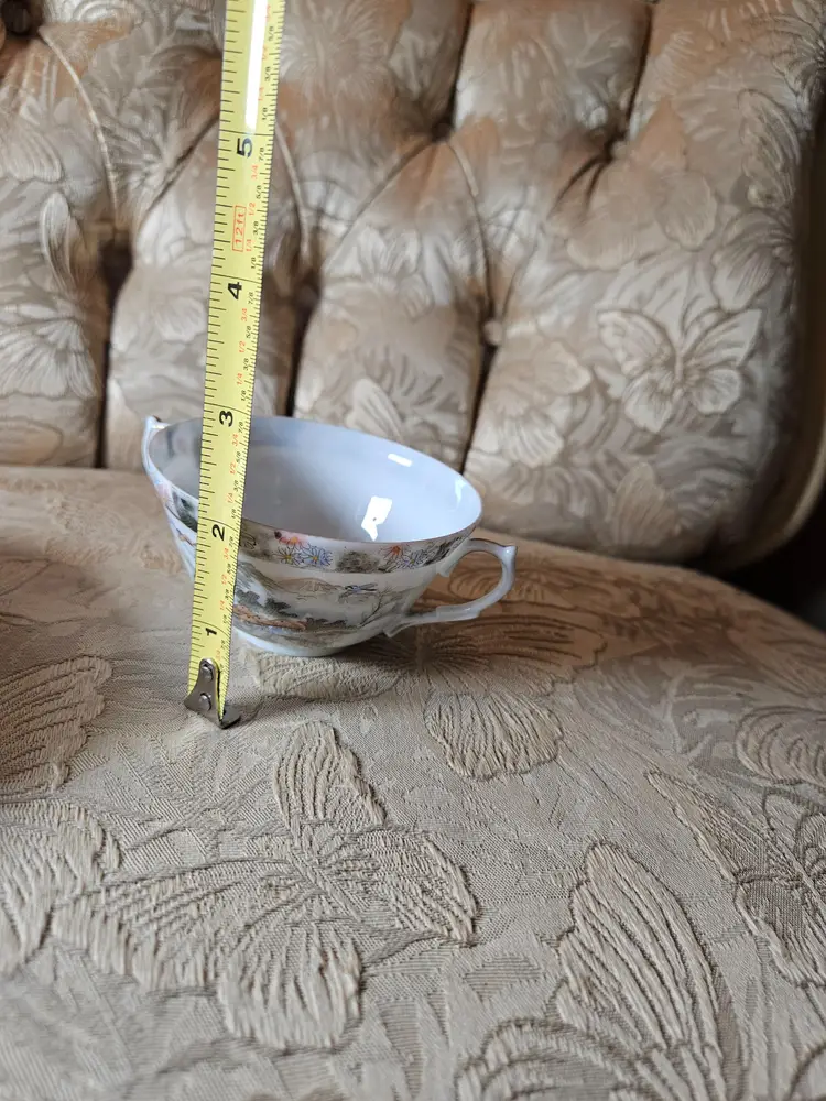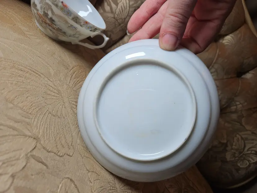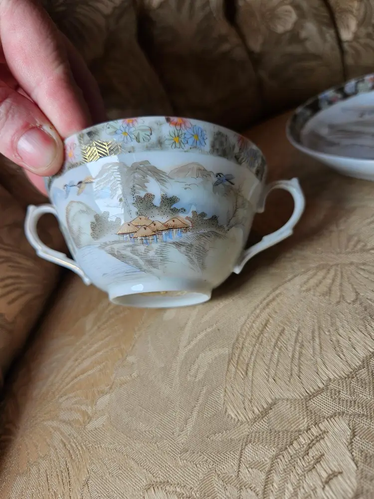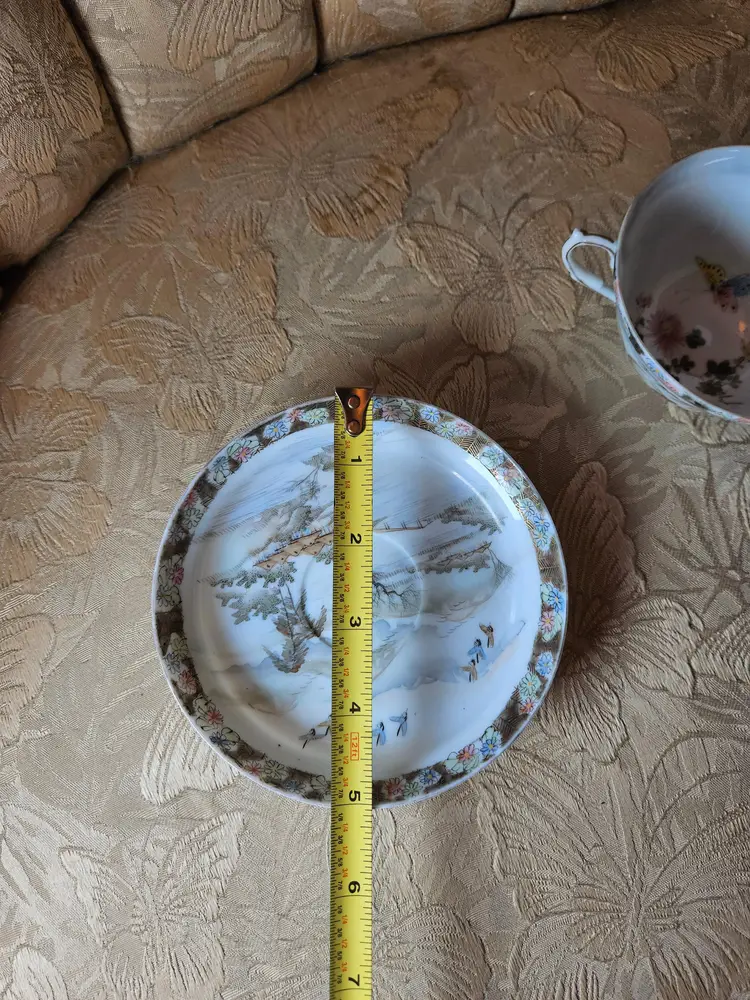 This is for a single teacup and saucer set. Not sure what the brand is, there is some sticker residue on the bottom of the cup. No chips or cracks, beautiful set.