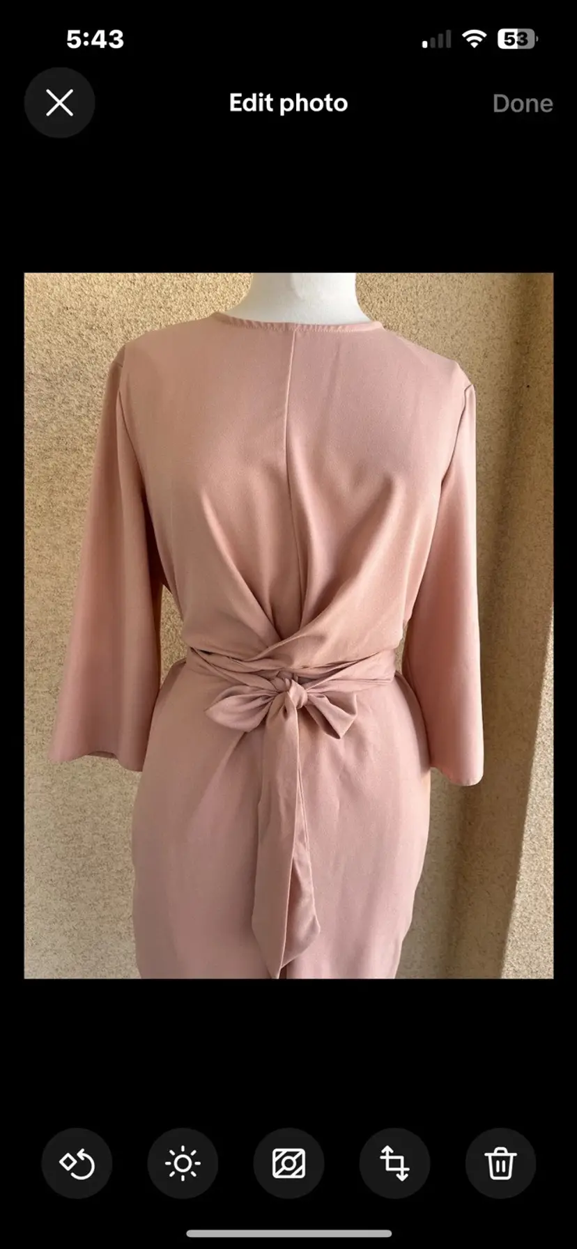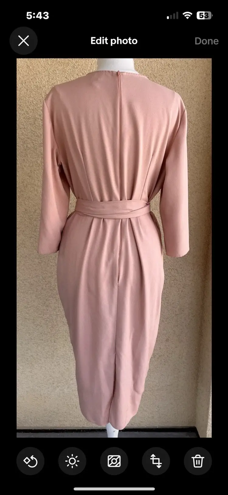 New without tags but back slit has been hand sewn to close it up somewhat, see photo. ASOS Women's size 12 pink belted, 3/4 sleeves dress classic Workwear Party NEW. Polyester, machine washable, 3/4 sleeves, belted, back zipper.