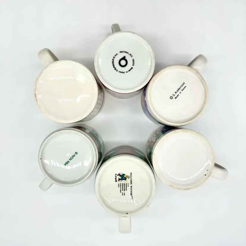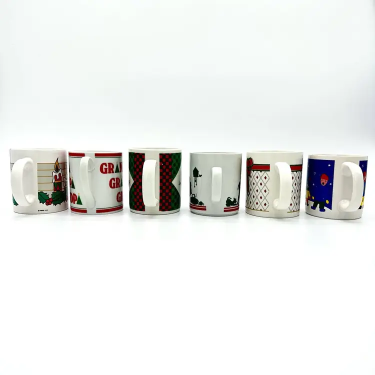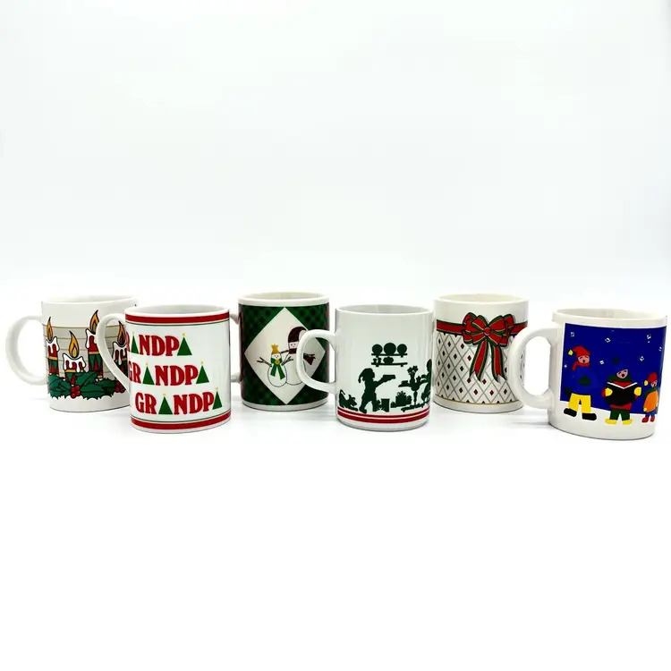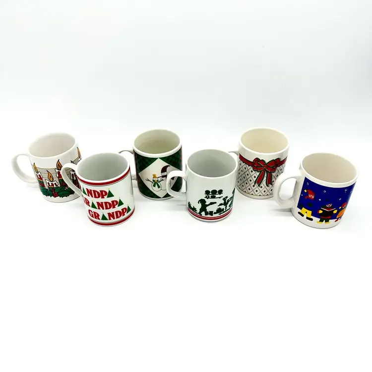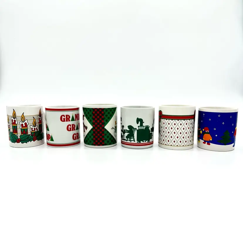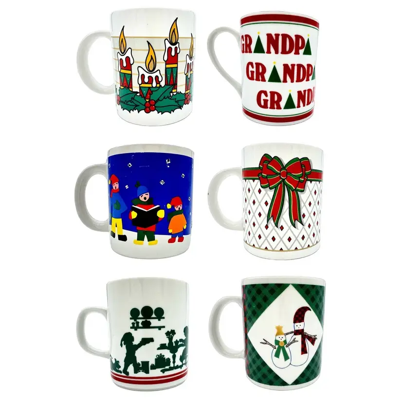 Assorted 70s 80s Vintage Christmas Mugs Lot of Six w Candles Snow Scene Grandpa