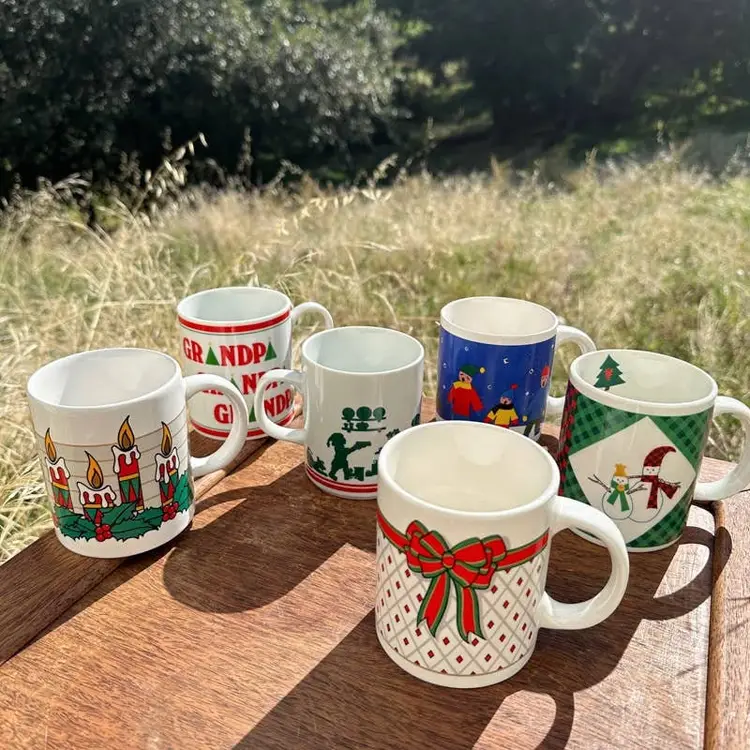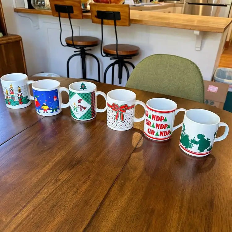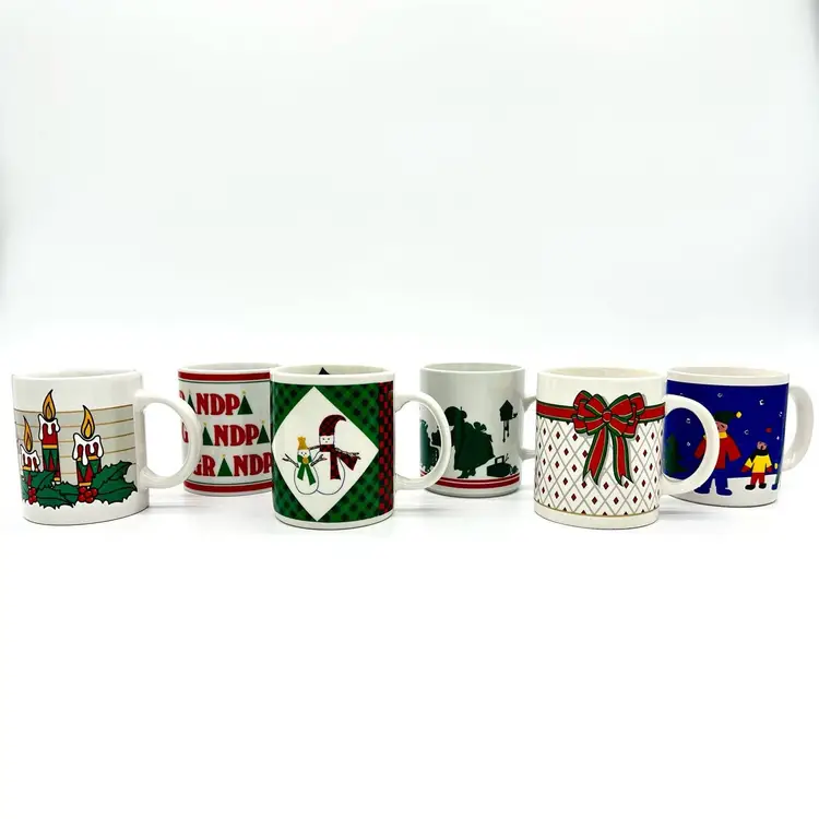 A grouping a coordinating but different vintage Christmas mugs. A ready-made collection!