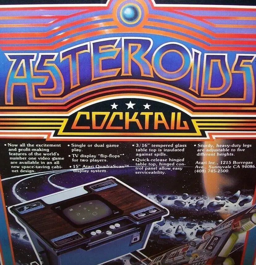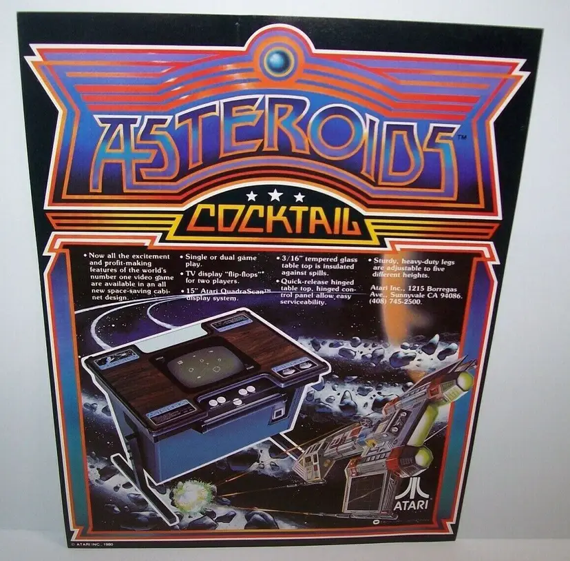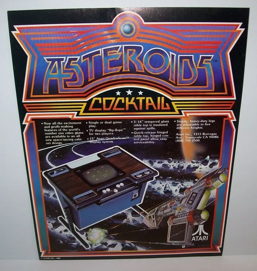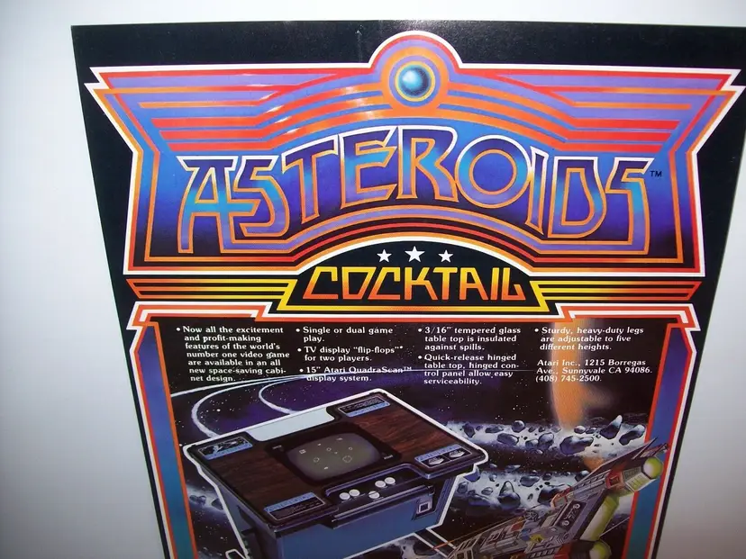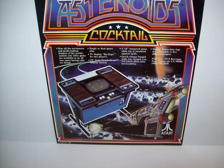 Arcade: Flyer Theme: Retro Gaming Modified Item: No Country/Region of Manufacture: United States Original/Reproduction: Original Year: 1980 Game Title: Asteroids Cocktail Brand: Atari