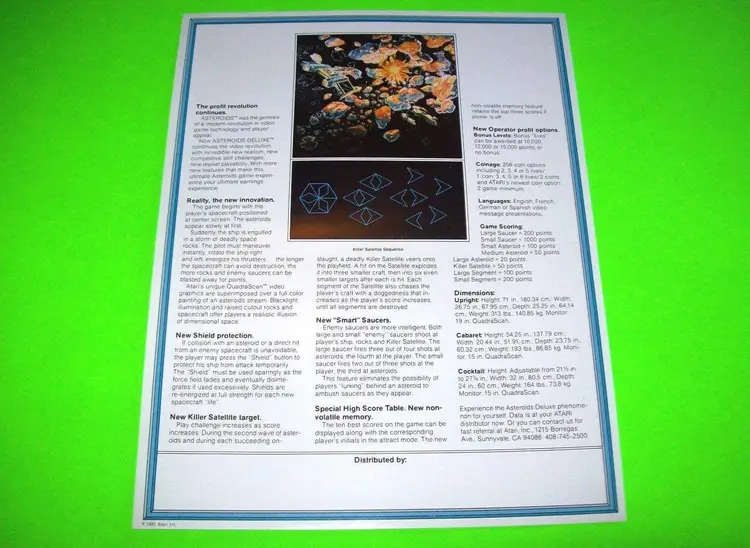 Flyers are perfect for framing and make great wall art. A flyer is an paper promotional advertising art print sheet made for coin operated amusement arcade games. Also called a circular, brochure, pamphlet, or flier. Plastic protector included with each flyer sold.