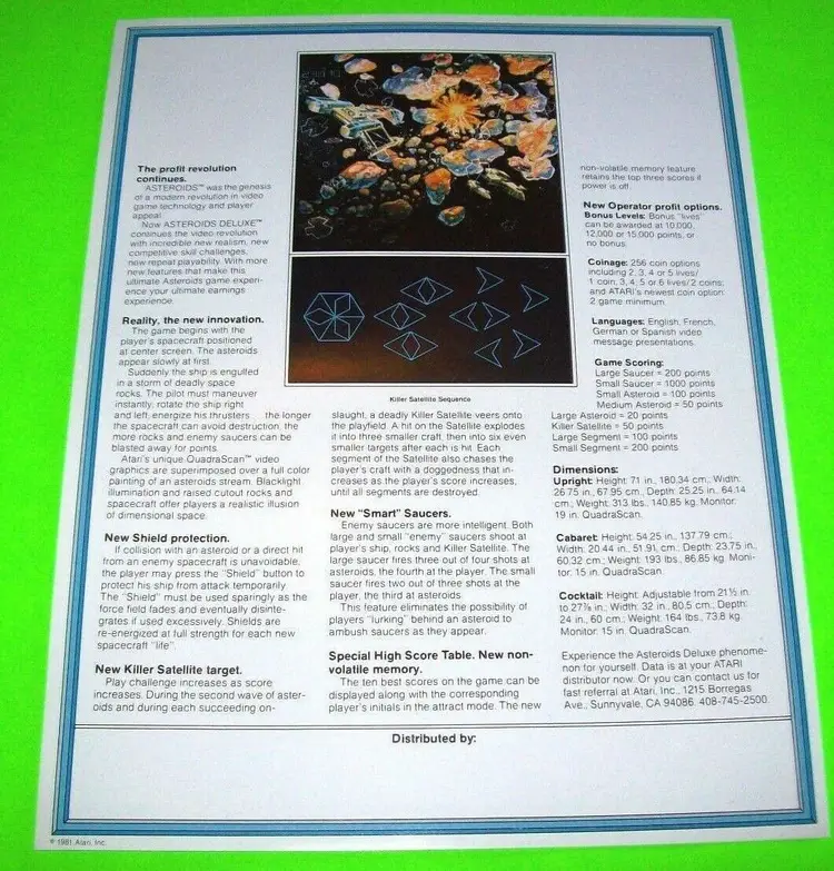 Flyers are perfect for framing and make great wall art. A flyer is an paper promotional advertising art print sheet made for coin operated amusement arcade games. Also called a circular, brochure, pamphlet, or flier. Plastic protector included with each flyer sold.