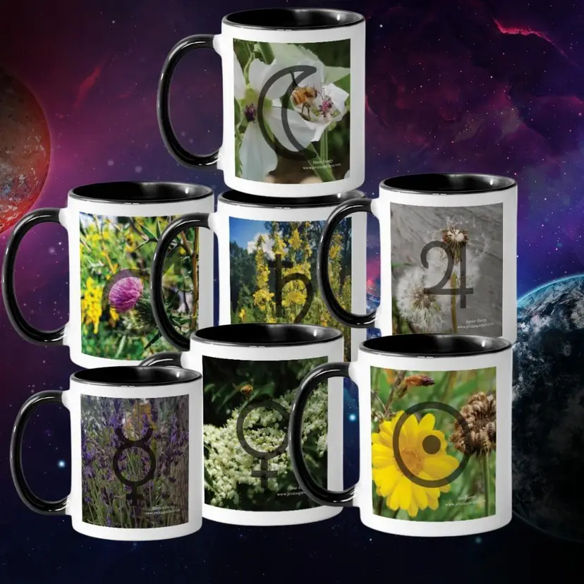 Also on each mug is a Photo from Jenza's Garden of a Plant that is associated with the corresponding Planet.