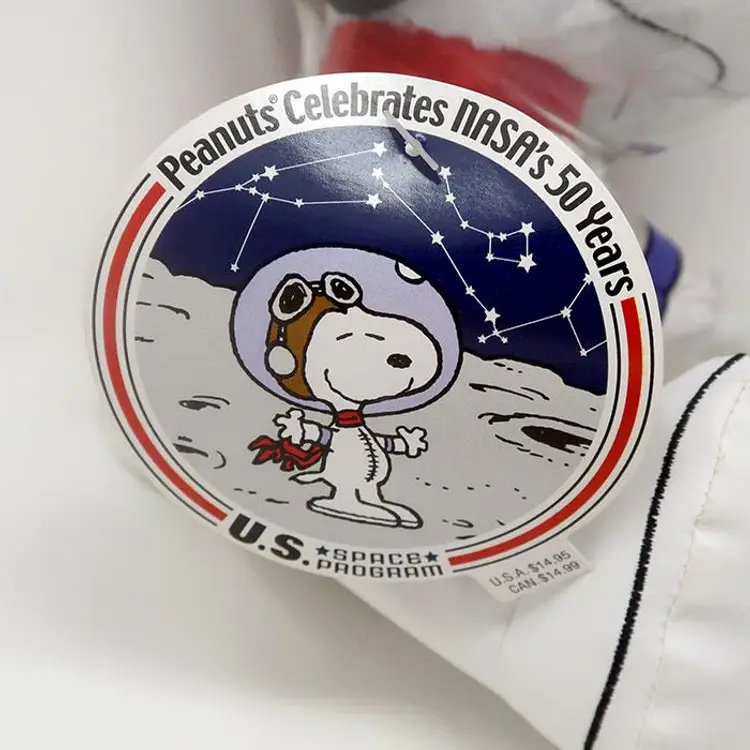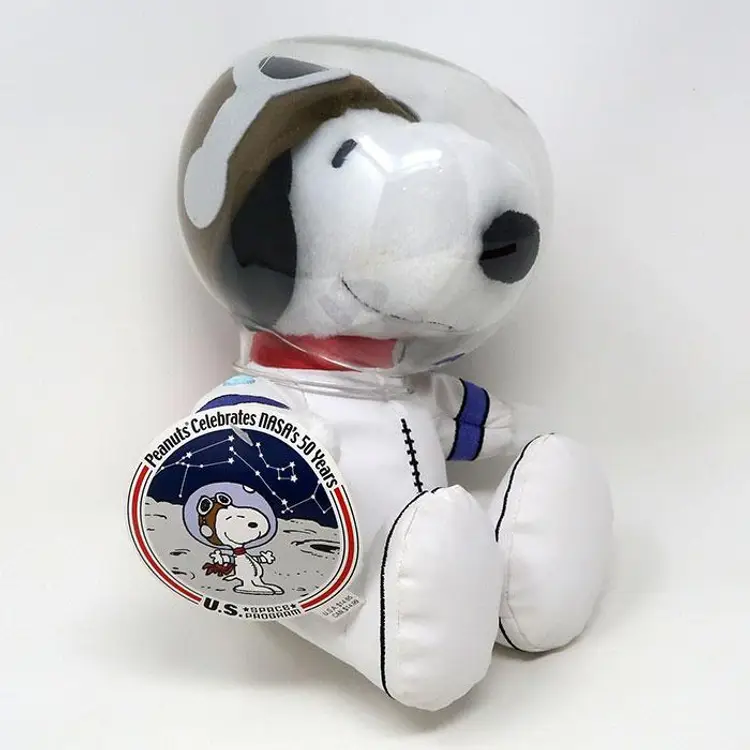 Blast off with this adorable Astronaut Snoopy Plush, celebrating NASA's 50 years of space exploration in 2008. Dressed in a detailed astronaut suit with a clear helmet, Snoopy is ready for any space adventure. This collectible 8" tall plush is perfect for Peanuts fans and space enthusiasts alike. Comes with a commemorative tag. In excellent condition and made by Hallmark.