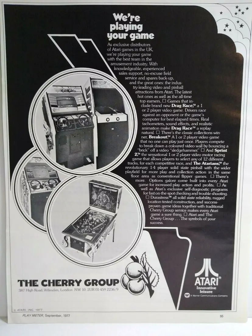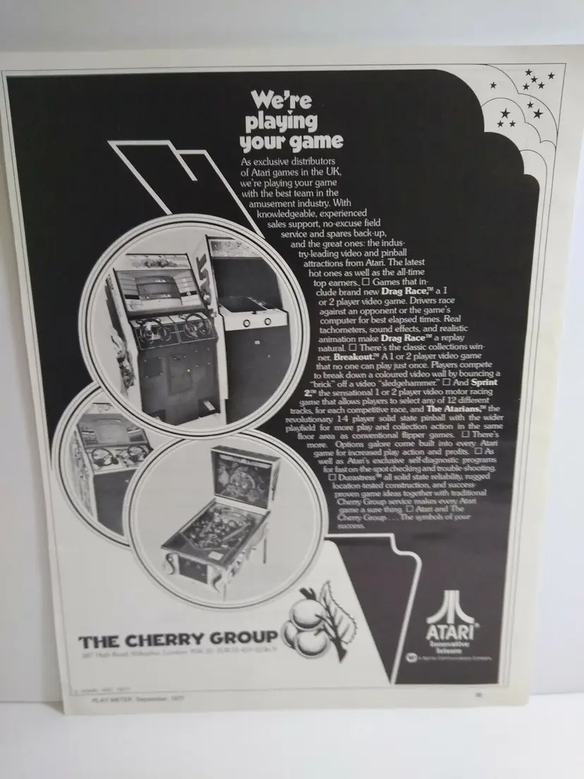 Magazine: AD Modified Item: Yes Country/Region of Manufacture: United States Original/Reproduction: Original Year: 1977 Game Title: The Atarians / Breakout / Sprint 2 / Drag Race Modification Description: Edge wear. See notes. Brand: Atari