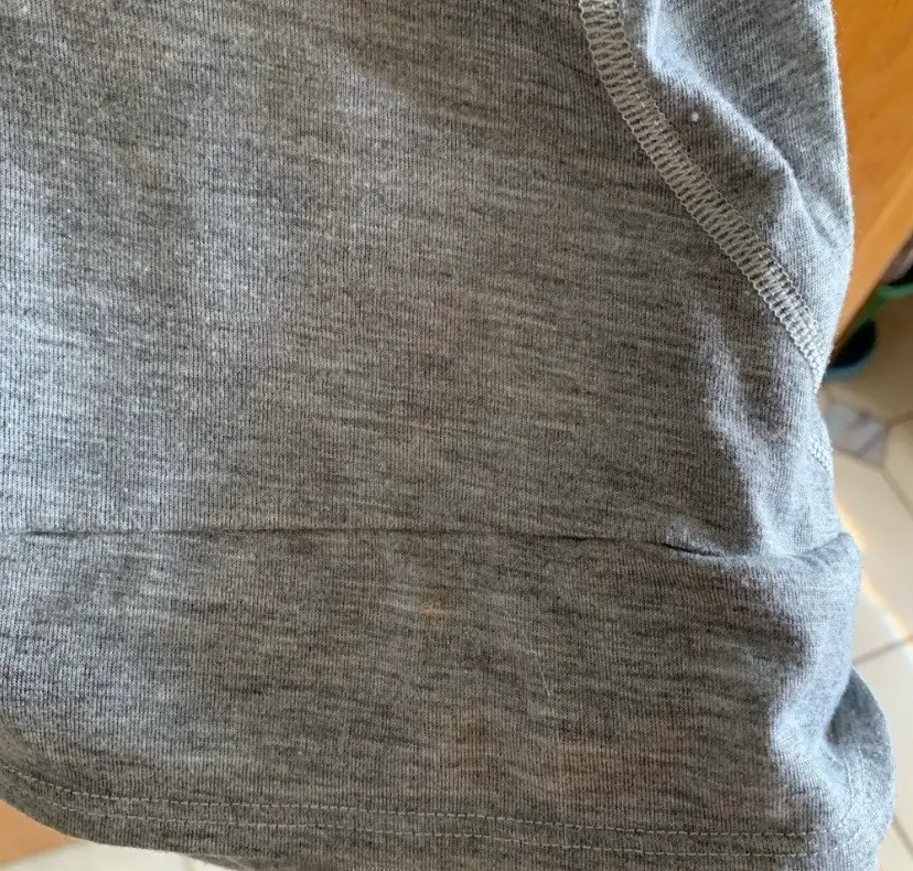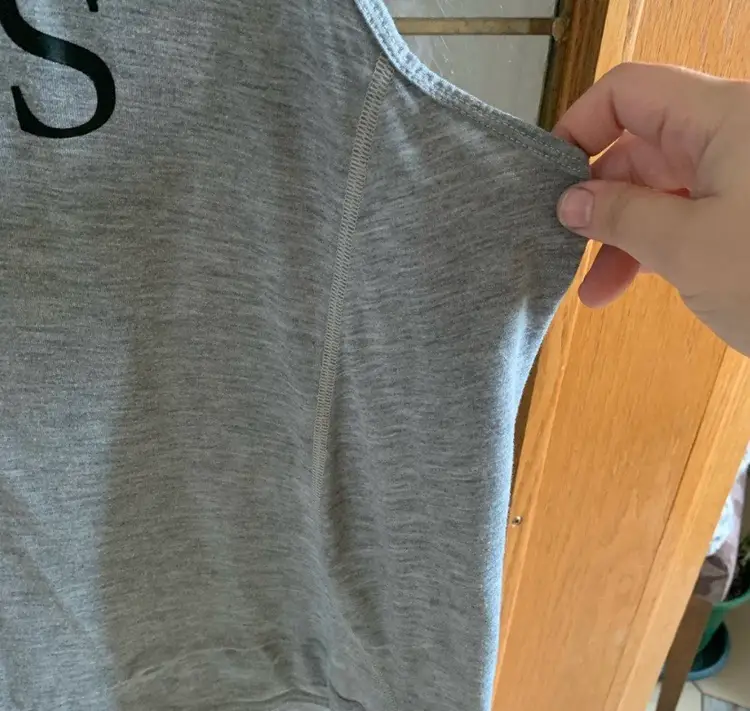 21” pit to pit. No fabric tag. Pronounced seams at bottom and on sides.