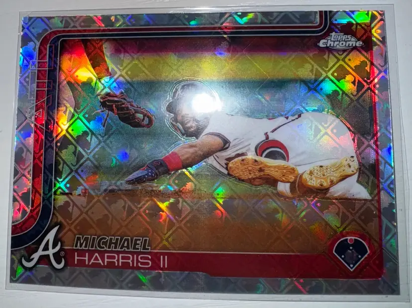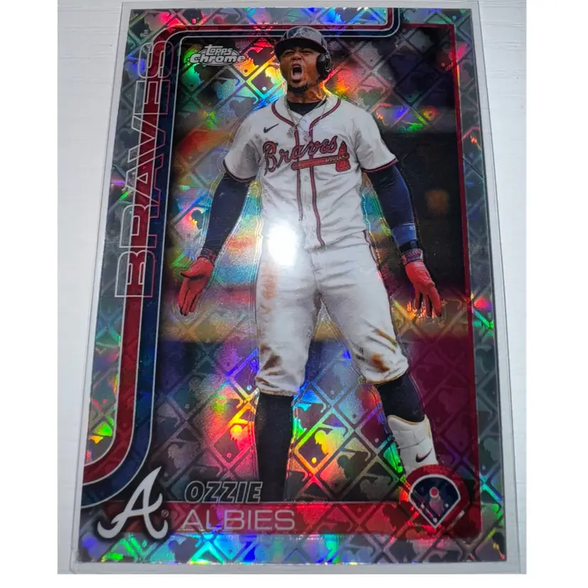 This 3 Card Lot Includes: Wes Parsons 2015 Bowman Chrome Auto Michael Harris II 2025 Topps Chrome Logofractor Ozzie Albies 2025 Topps Chrome Logofractor