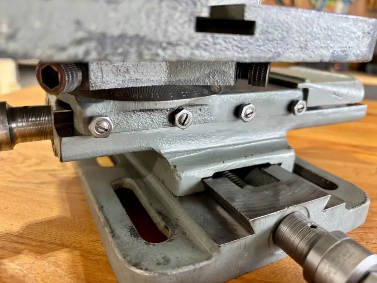 Vintage Atlas W68 Universal Compound Vise. This Cross-Slide (X/Y Axis Movement) vise is about as clean and functional as you're ever going to find. Every part of the vise has been cleaned and oiled and the result is silky smooth movement in all directions for that extra needed precision you've been looking for. Perfect for dialing in those exact drilling locations and milling operations. Of course, this thing is a heavy beast, so I've listed with appropriate shipping cost to cover making sure it is packaged well and arrives safely to you. Table measures 7"x7" and is approximately 6" tall when fully assembled. Weights 24 pounds.