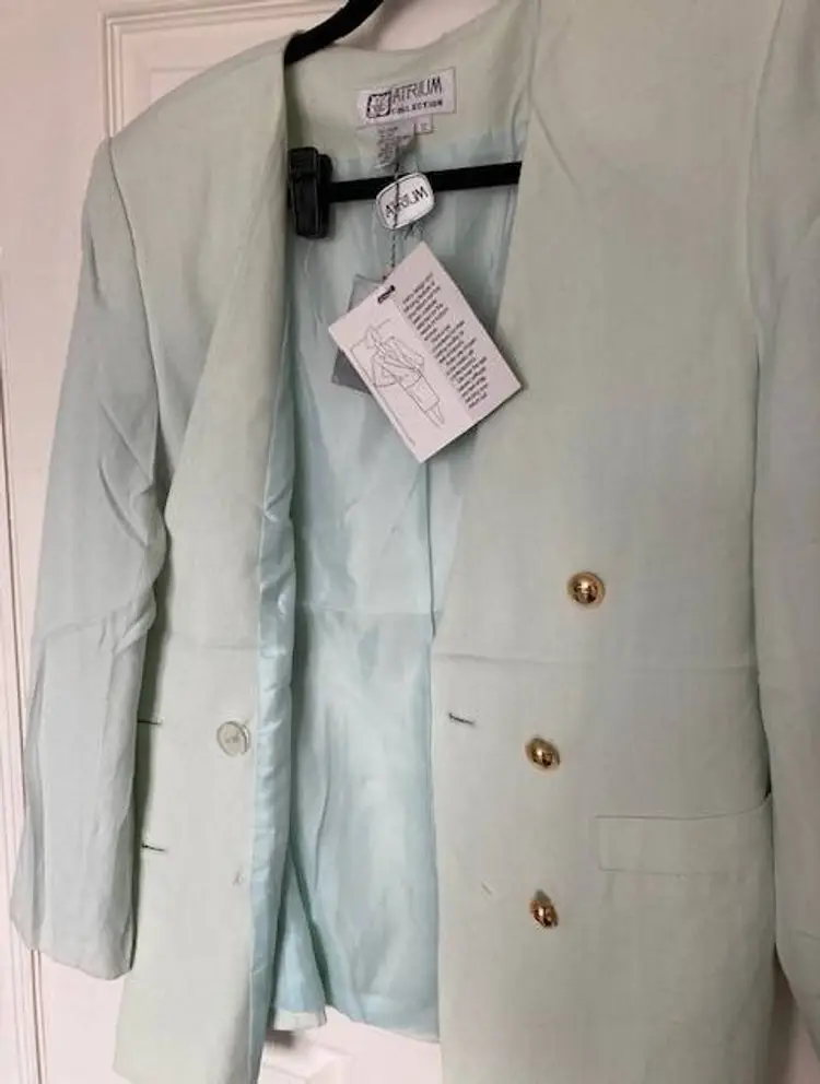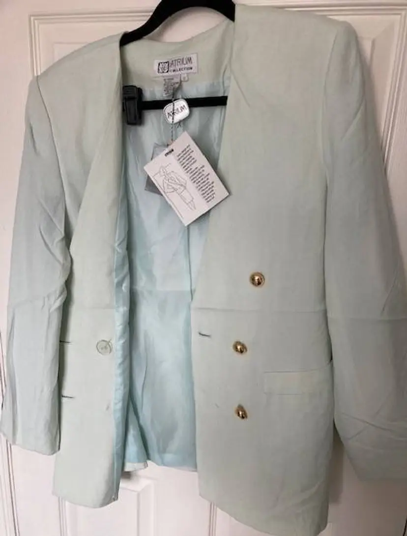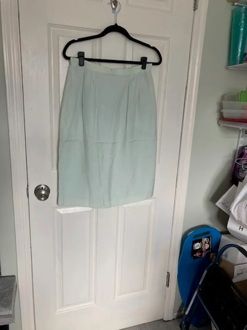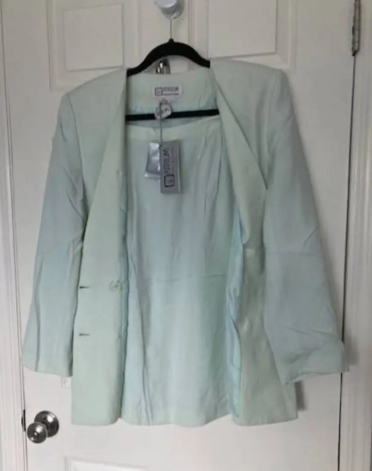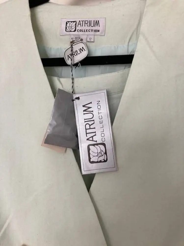 NWT Atrium Collection from Dress Barn 2 pc light Green fully lined Skirt Size 12. 95% Rayon 5% Silk. Linen like. Gold button close (with inner hidden button). Skirt has button zipper back close.