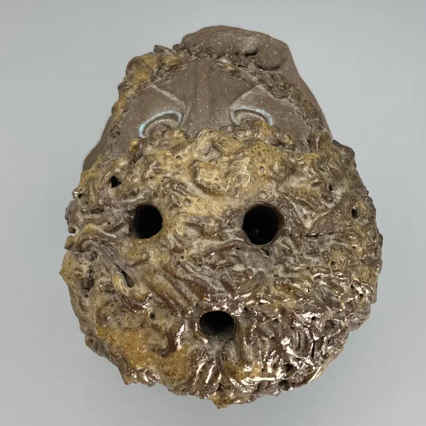 The ULTIMATE flower frog, this clay figure is part of a collection called "Weed People". They are called weed people because they have little holes (3 in his head and one in his hand) designed to hold dried weeds or flowers. They had a little poem that went along with them...